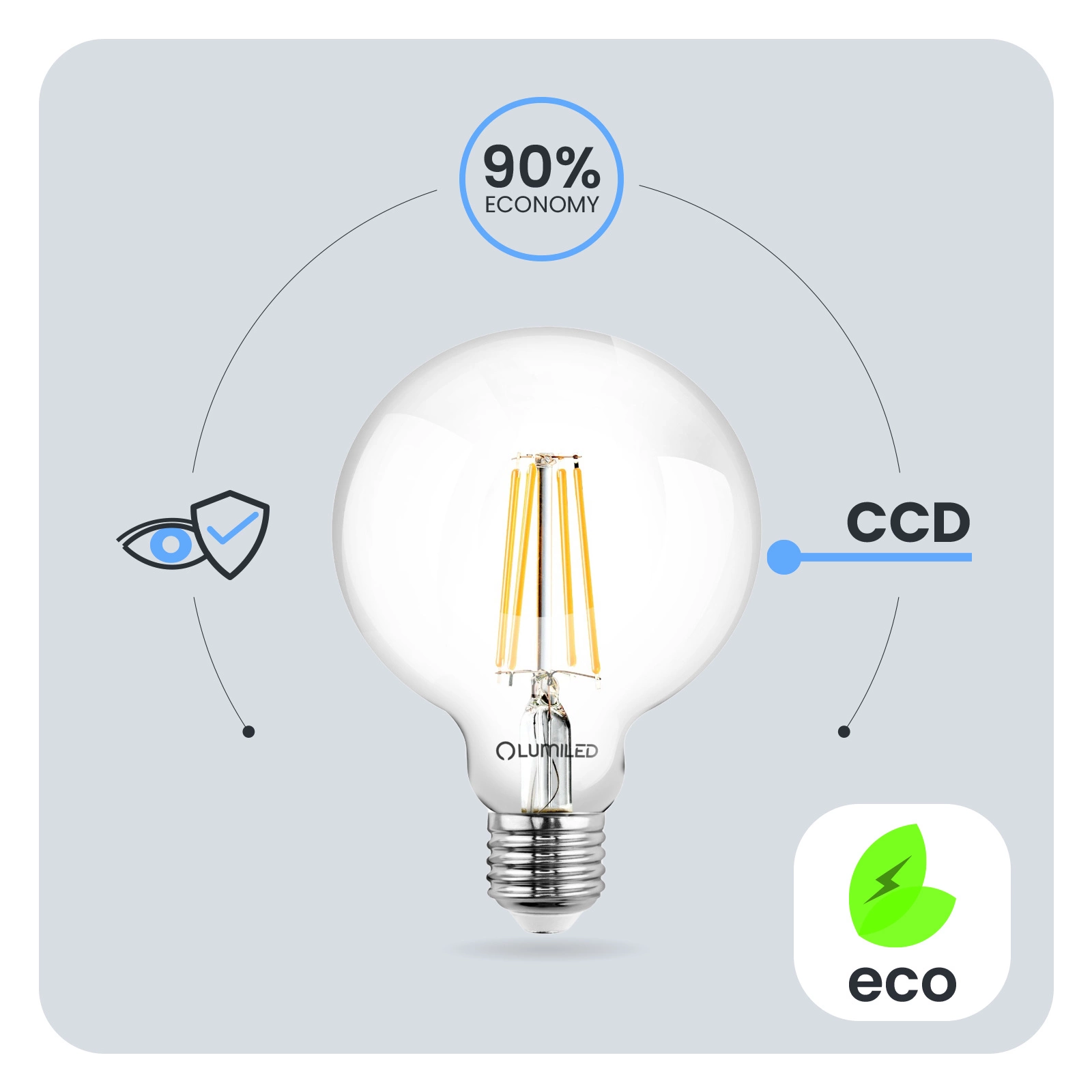 Der in der LED-Glühbirne verwendete CCD-Inverter macht die Glühbirne widerstandsfähig gegen Einbrüche und Spitzen in der Netzspannung. Das Licht flackert und zittert nicht. Der CCD-Konverter sorgt dafür, dass die Glühbirne über einen langen Zeitraum hinweg einwandfrei funktioniert. Bei der Entwicklung der LUMILED-Glühbirnen wurde an den Benutzer gedacht. Eine schlechte Beleuchtungsqualität kann zur Ermüdung der Augen führen. Deshalb verfügen unsere Lampen über die technische Entwicklung Eye Safe, um in jedem Raum eine angenehme und augenfreundliche Beleuchtung zu gewährleisten.