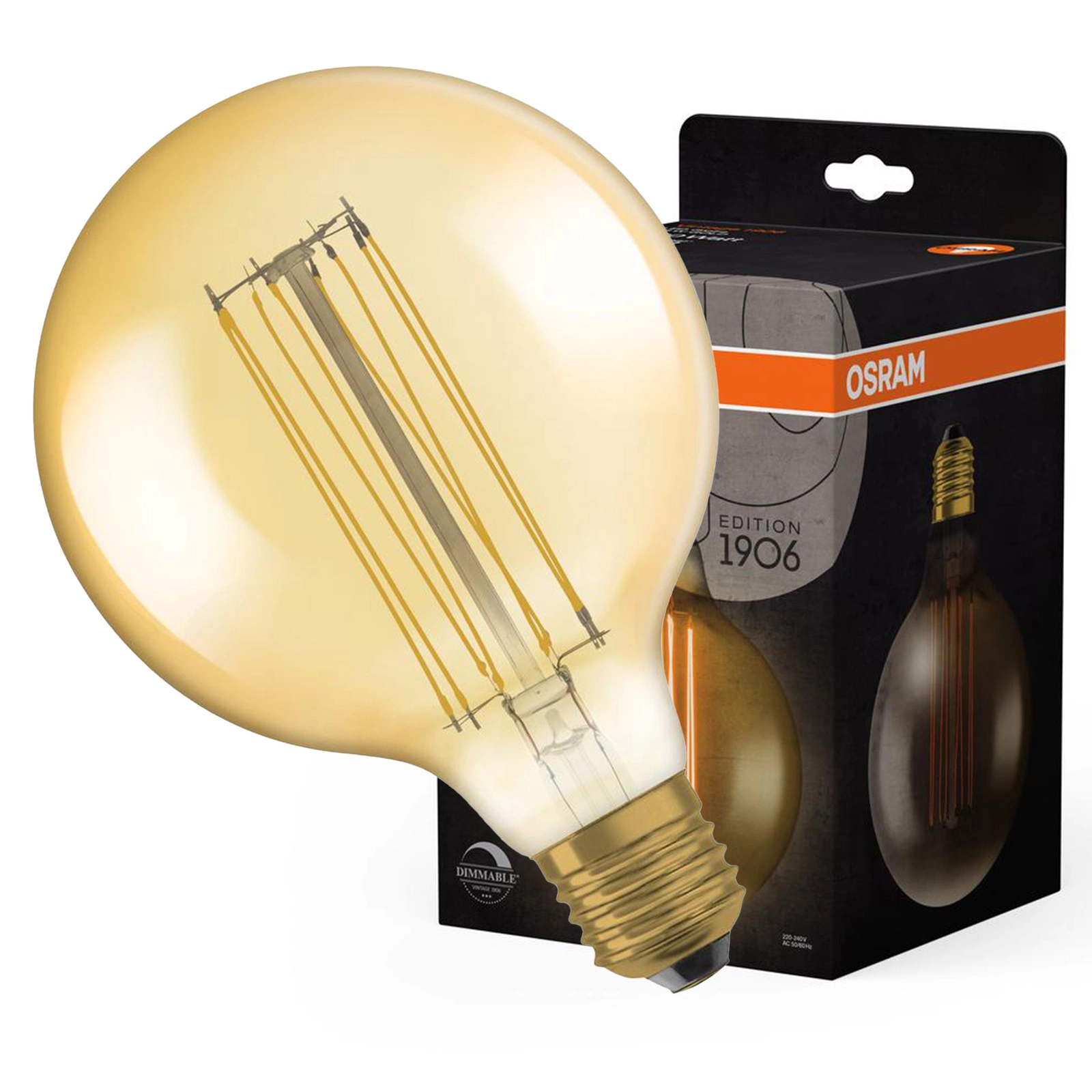 Dekorative Leuchtmittel E27 G125 8,8W = 60W 806lm 2200K Warm 320° Filament dimmbar OSRAM Vintage 1906