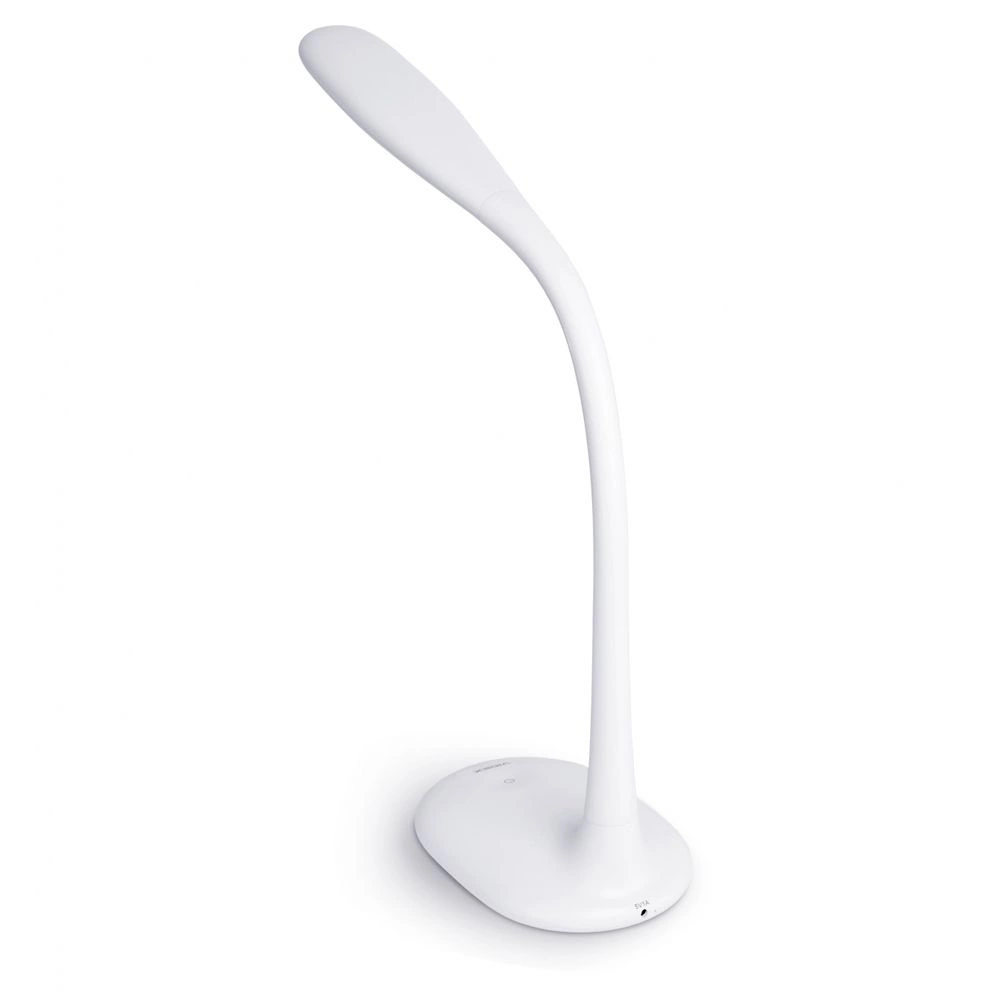 Die 5,5-W- LED-Schreibtischlampe von Videx aus der Denver-Serie ist eine moderne und elegante Lampe, die perfekt für jeden Schreibtisch geeignet ist. Bei der hier vorgestellten LED-Lampe können Sie den Beleuchtungswinkel verstellen und so den Lichtstrom ganz einfach an Ihre Bedürfnisse anpassen. Die in dieser Leuchte verbauten LEDs sind über eine große Leuchtfläche verteilt, was den Arbeitskomfort erheblich beeinträchtigt. Das Lampenlicht flackert nicht und belastet die Augen bei längerer Arbeit nicht. Der Lampenkörper besteht aus glattem und glänzend weißem Kunststoff. Die Lampe verfügt über eine flexible und bewegliche Struktur, die eine Drehung ermöglicht. Die Lampe kann sowohl über das mitgelieferte Netzteil als auch beispielsweise über den USB-Anschluss eines Computers betrieben werden. Die Schönheit und Schlichtheit dieser Lampe wird eine Dekoration für jedes moderne Interieur sein. Es ist auch perfekt für jeden Schüler, der Hausaufgaben macht oder Bücher liest.