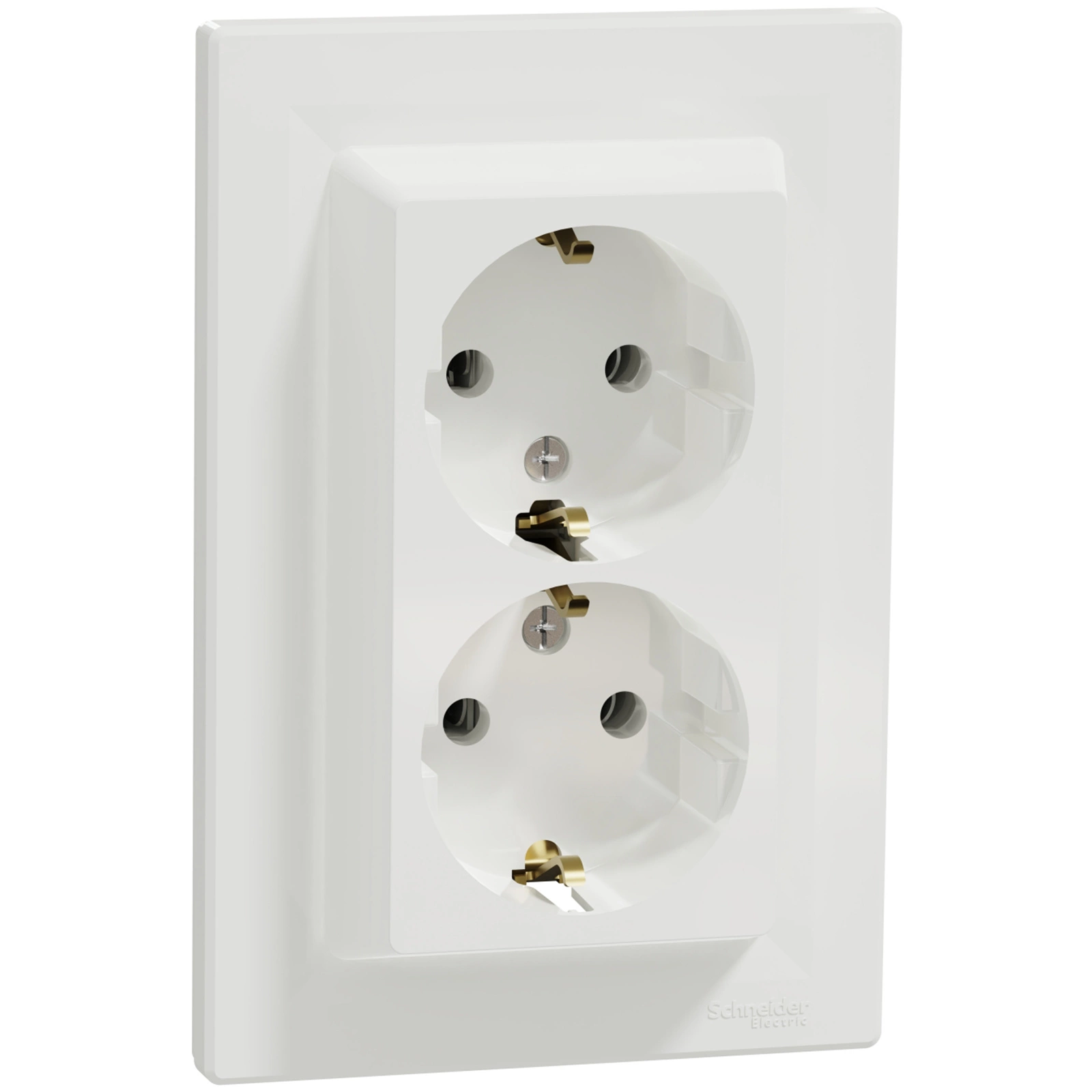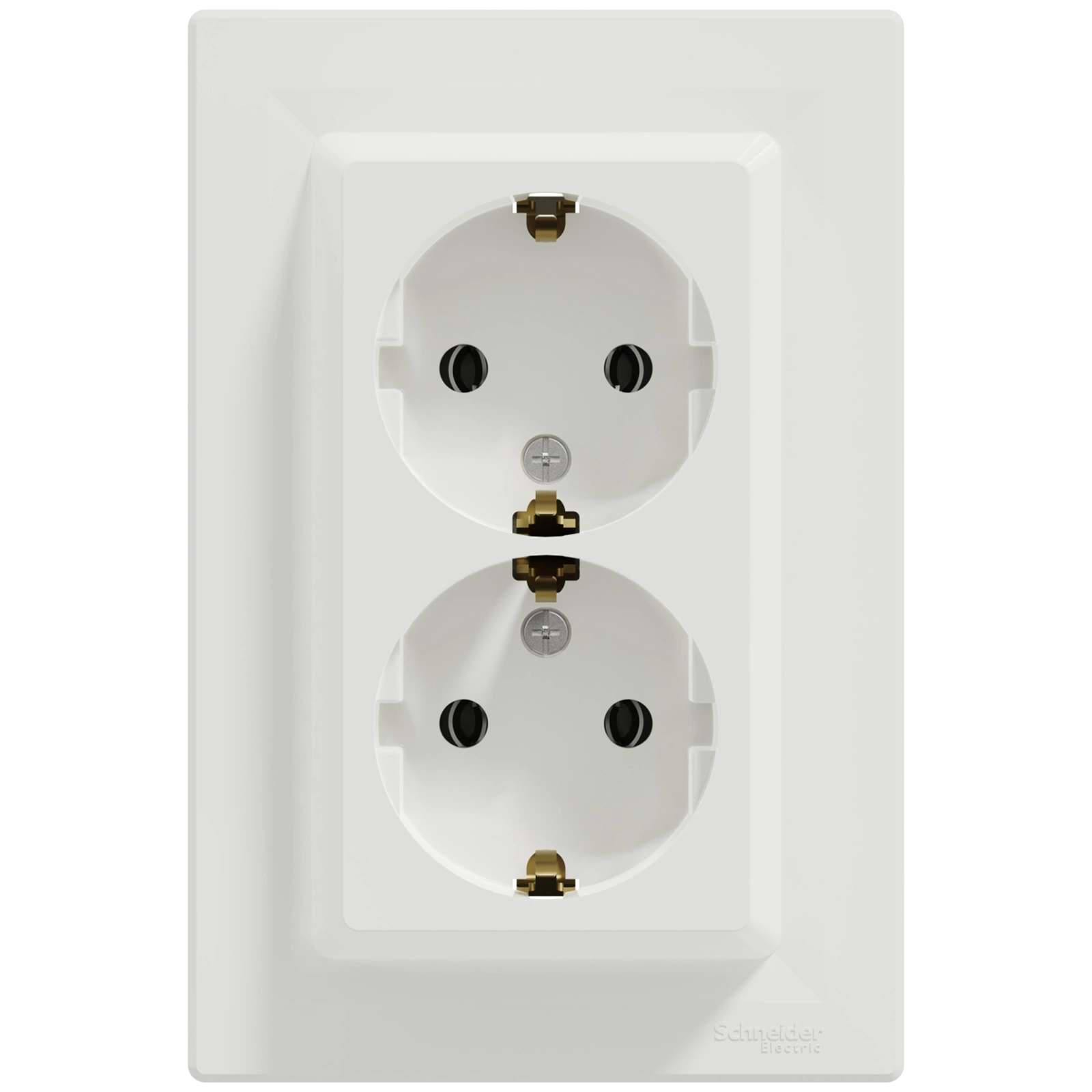 - Doppelsteckdose mit Schutzkontakten und Rahmen sorgt für eine sichere Nutzung