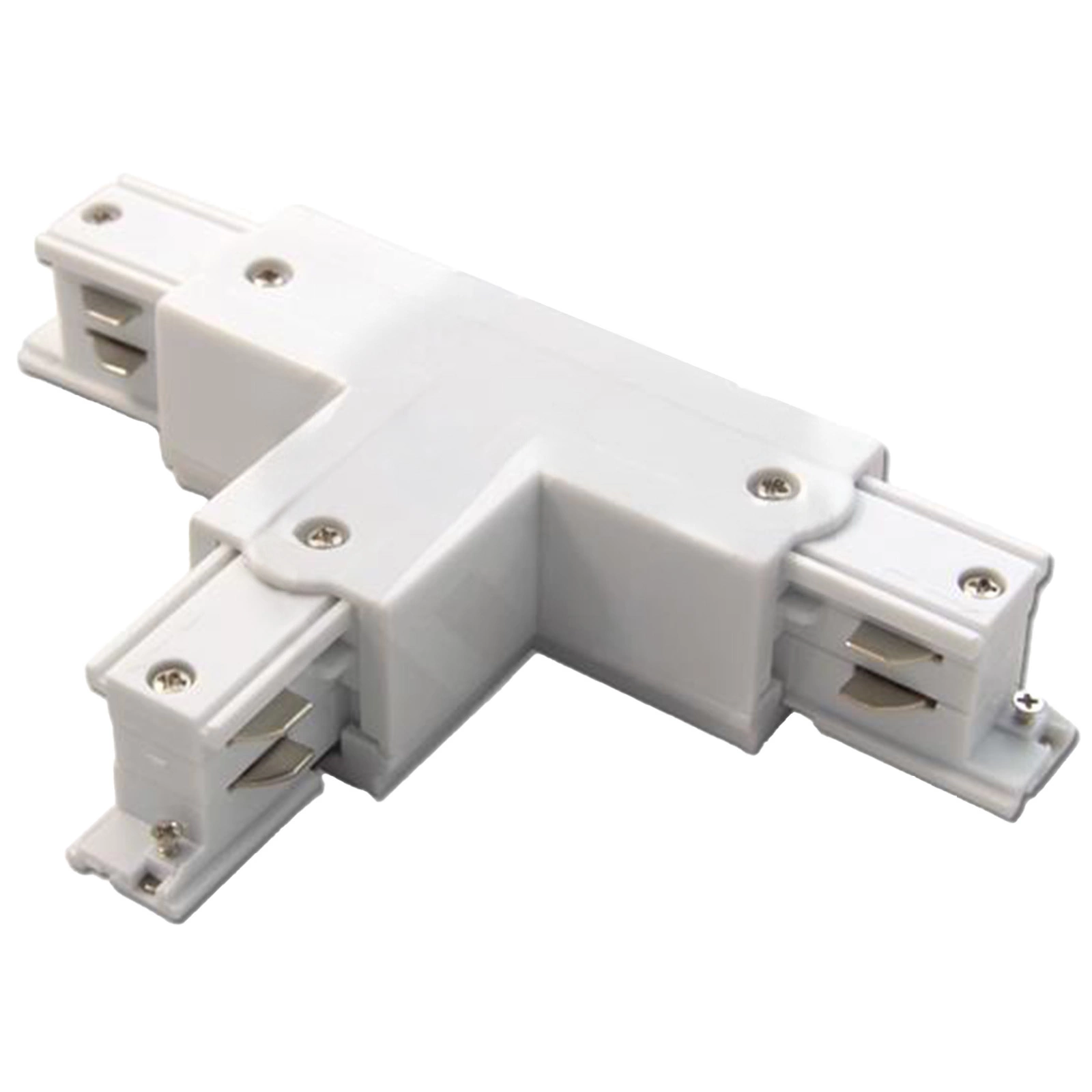 Der vorgestellte Dreifachverbinder in Weiß ist ein Element des Schienenbeleuchtungssystems. Er ermöglicht die Verbindung von Stromschienen in Reihe und im Winkel von 90° . Mithilfe von Steckverbindern können Sie Ihr Schienensystem auf Schienenleuchten erweitern.