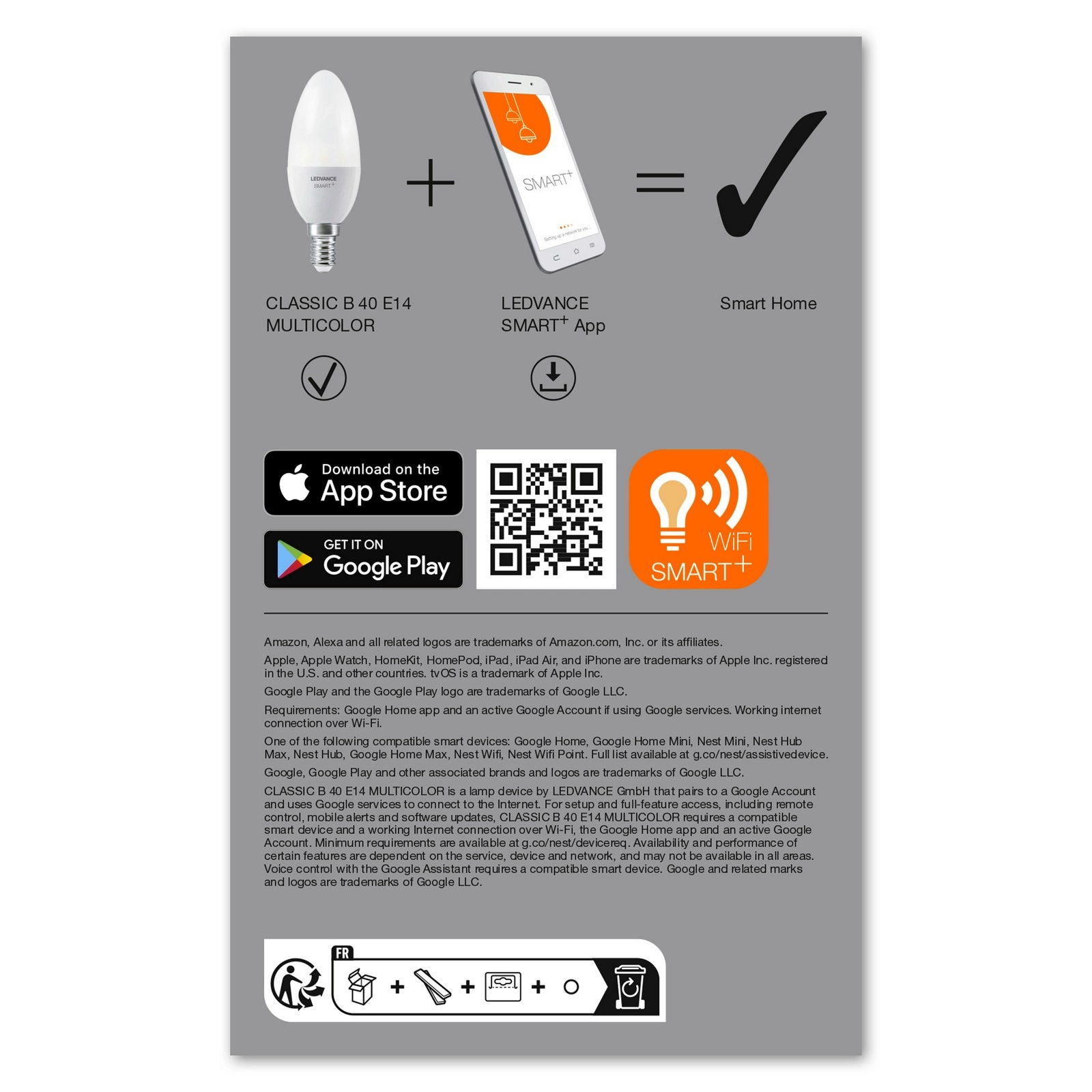 - Steuerbar über die LEDVANCE SMART+ App (mit Android mindestens 8.0 oder iOS 14.0).