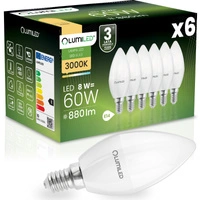 Ausverkauft6x LED-Lampe E14 Kerze B35 8W = 60W 880lm 3000K warmweiß 180° LUMILED