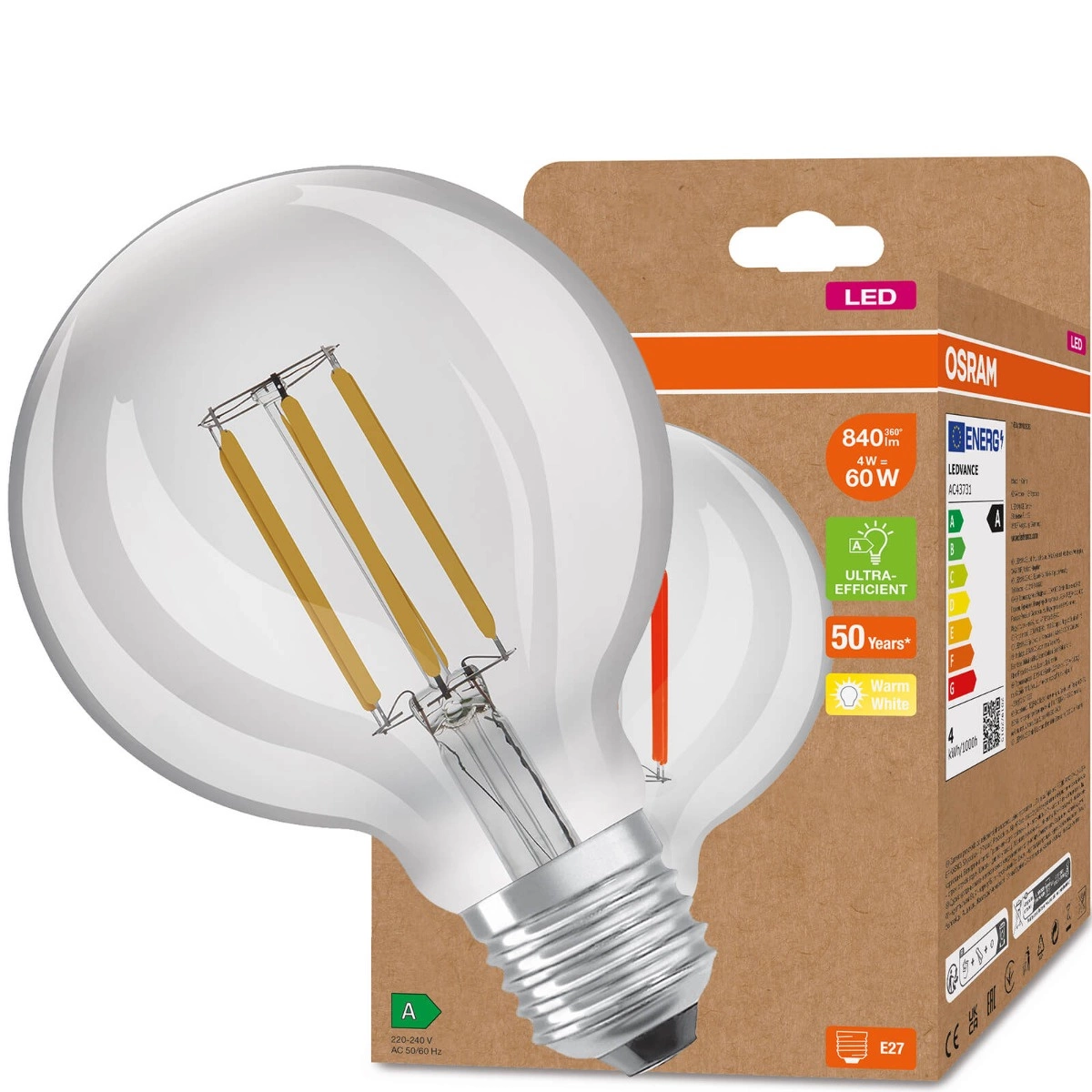 E27 CL G95 LED-Glühbirne 4W = 60W 840lm 3000K Warm 360° OSRAM ULTRA EFFICIENT Filament