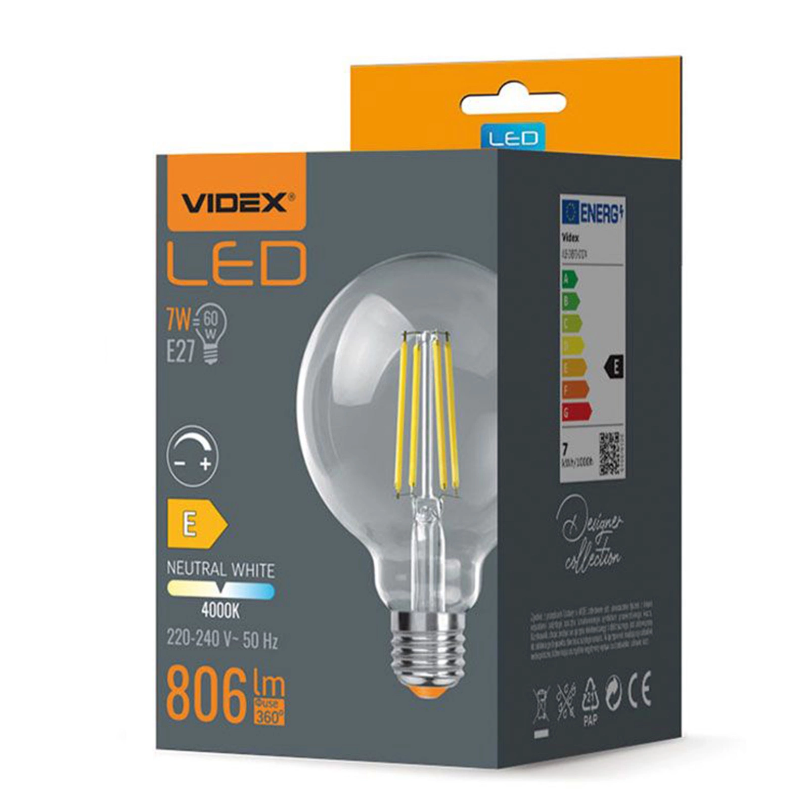 E27 G95 LED-Glühbirne 7W = 60W 806lm 4000K Neutralfaden Dimmbar 360° VIDEX