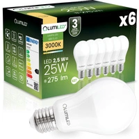 6x LED Lampen E27, Glühbirne A60 8W = 60W 806lm 260° 3000K warm LUMILED
