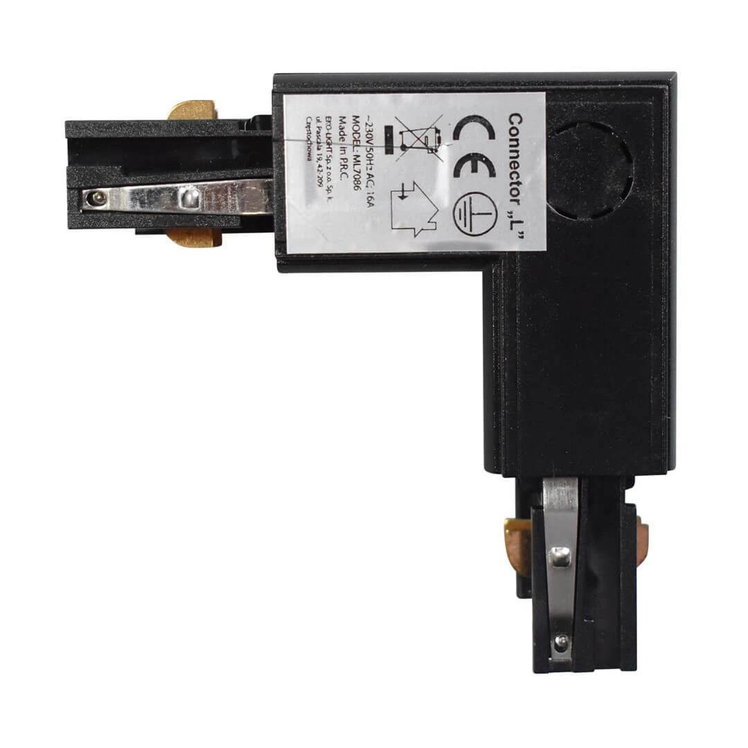 Eckverbinder in schwarz zum Verbinden von zwei Stromschienen im 90°-Winkel. Durch die Verwendung von Verbindern können Sie die Schienen für die Schienenlampen verlängern.