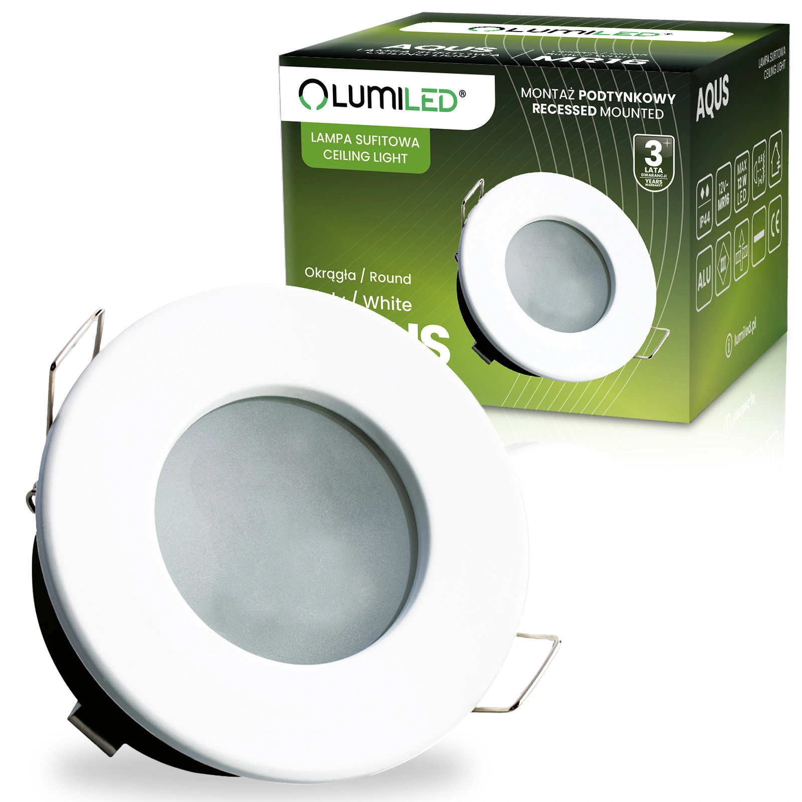 Die runde LeuchteAQUS der renommierten Marke Lumiled ist eine Einbauleuchte aus hochwertiger Aluminiumlegierung, die für den Betrieb mit LED-Leuchtmitteln mit GU10-Sockel konzipiert ist, deren Leistung 12 W nicht überschreitet. Eine Besonderheit dieser Leuchte ist die Verwendung von mattiertem Glas, das nicht nur eine ästhetische, sondern auch eine praktische Funktion erfüllt. Das mattierte Glas streut das Licht sanft, so dass es nicht blendet und ein angenehmes, subtiles Licht erzeugt. Das macht die Beleuchtung angenehmer für die Augen und verleiht dem Innenraum eine schlichte, moderne Ausstrahlung. Dank der Verwendung robuster Materialien garantiert diese Leuchte Langlebigkeit und Widerstandsfähigkeit gegen Spritzer und Feuchtigkeit und eignet sich daher ideal für Räume mit hoher Luftfeuchtigkeit, wie z. B. Bäder und Küchen.