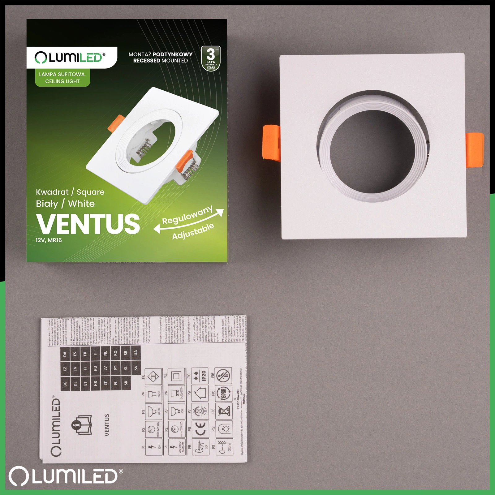 Einbaustrahler GU10, MR16 Einbauspot HALOGEN Quadrat beweglich Weiß VENTUS LUMILED