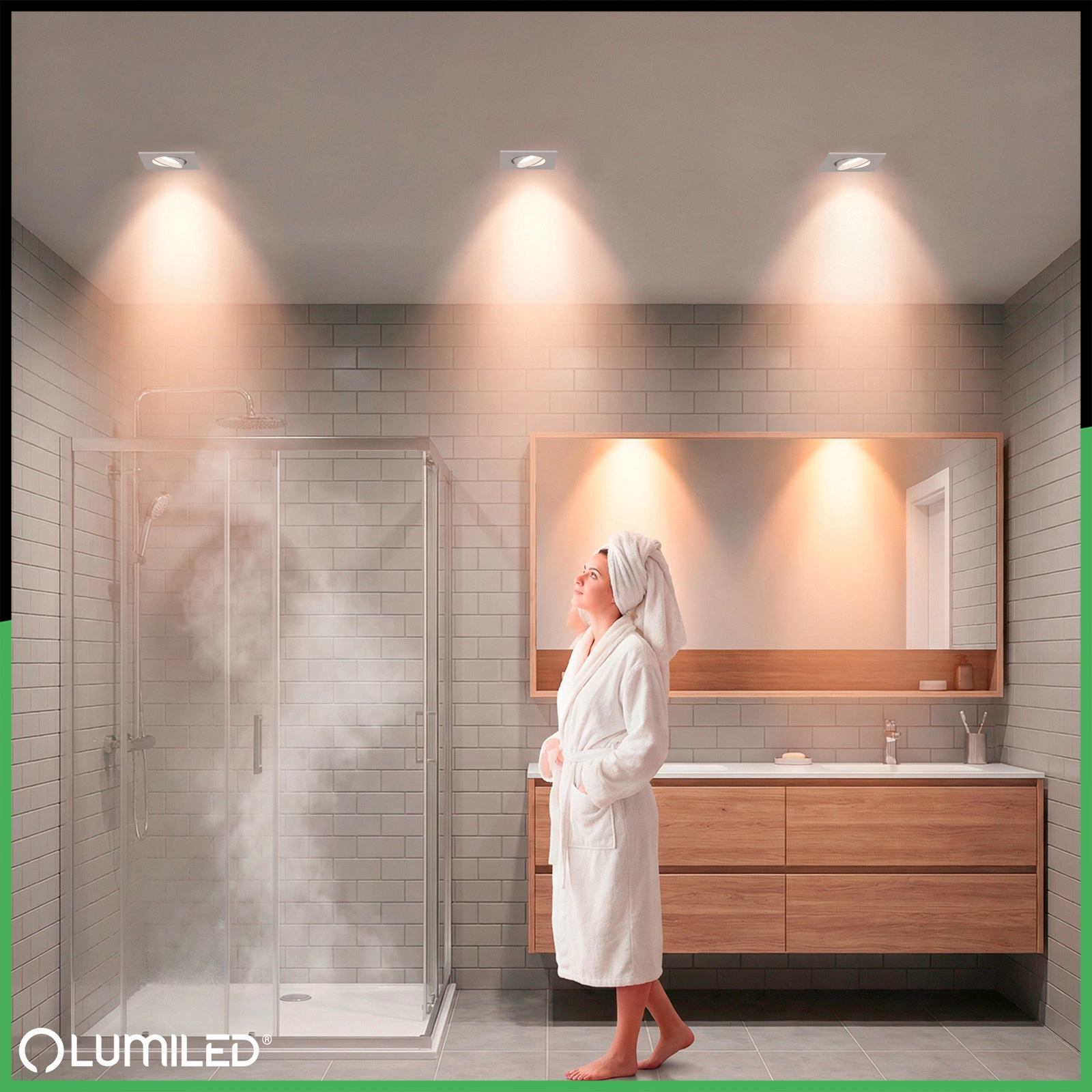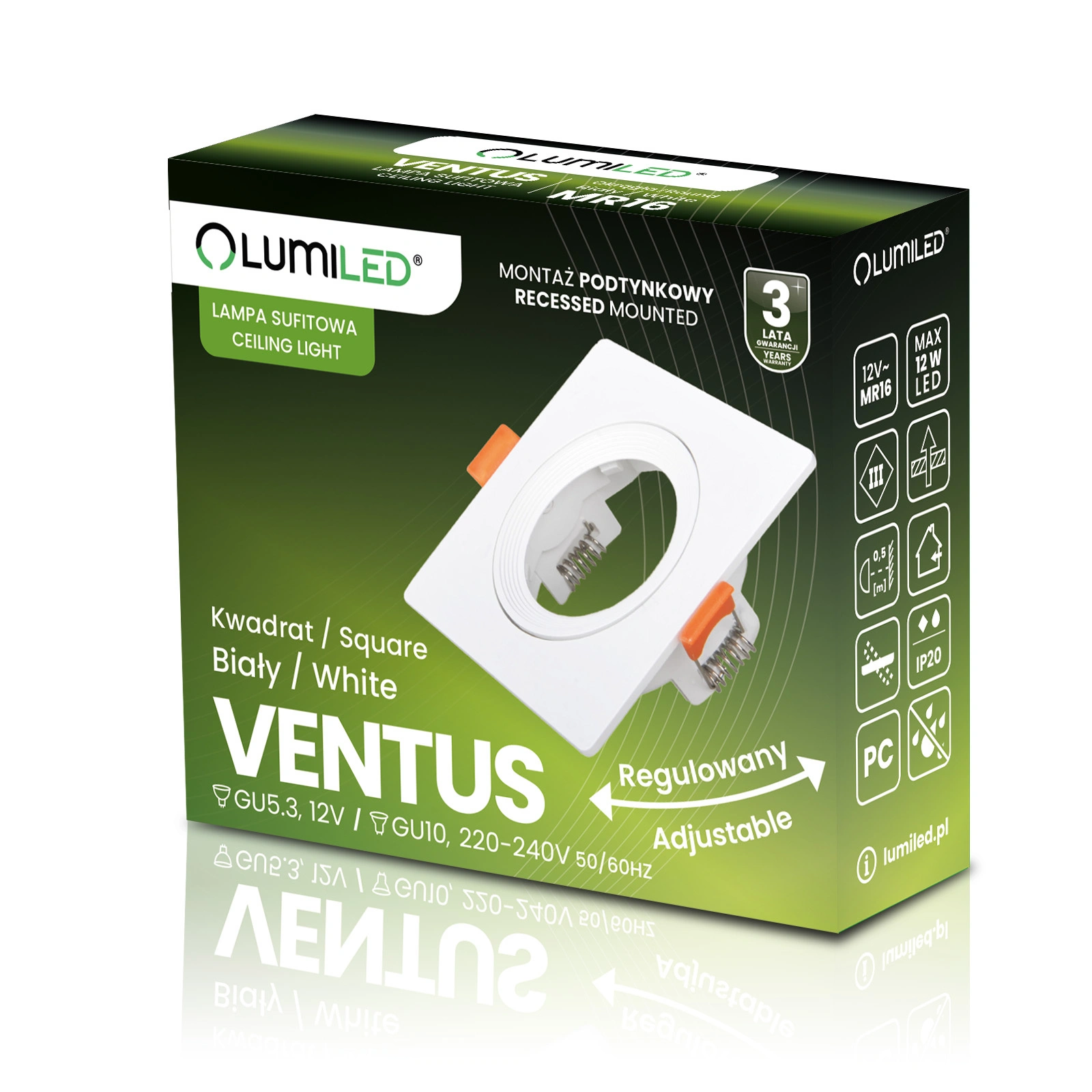 Die quadratische Halogenlampe VENTUS in Weiß von Lumiled besteht aus hochwertigem Kunststoff. Die Leuchte ist für den Einbau geeignet und mit einem beweglichen Innenring ausgestattet , dank dem wir den Beleuchtungswinkel der Leuchte einfach anpassen können .