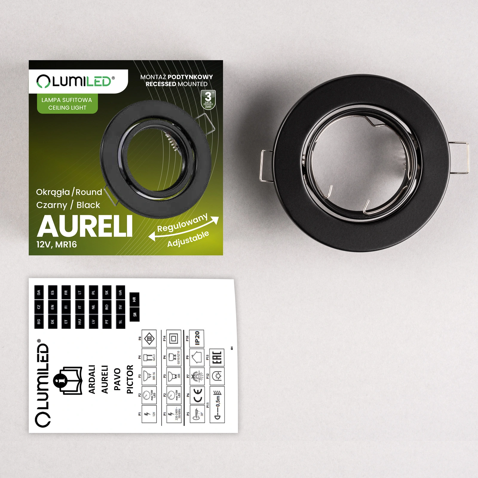 Einbauleuchte HALOGEN beweglich kreisförmig AURELI Schwarzblech MR16 GU10
