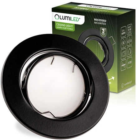 Runde, bewegliche Halogenleuchte in Schwarz, marken Lumiled, ist hergestellt aus hochwertigem Stahl. Die Leuchte wurde für die Unterputzmontage angepasst, in Kombination mit einer guten LED-Lampe kann sowohl zur dekorativen als auch zur allgemeinen Beleuchtung in größeren, offenen Räumen eingesetzt werden, in denen eine einzelne Lichtquelle nicht ausreicht, und kann dank ihres modernen Designs in allen modern eingerichteten Wohnungen, Häusern und eleganten Büros verwendet werden.