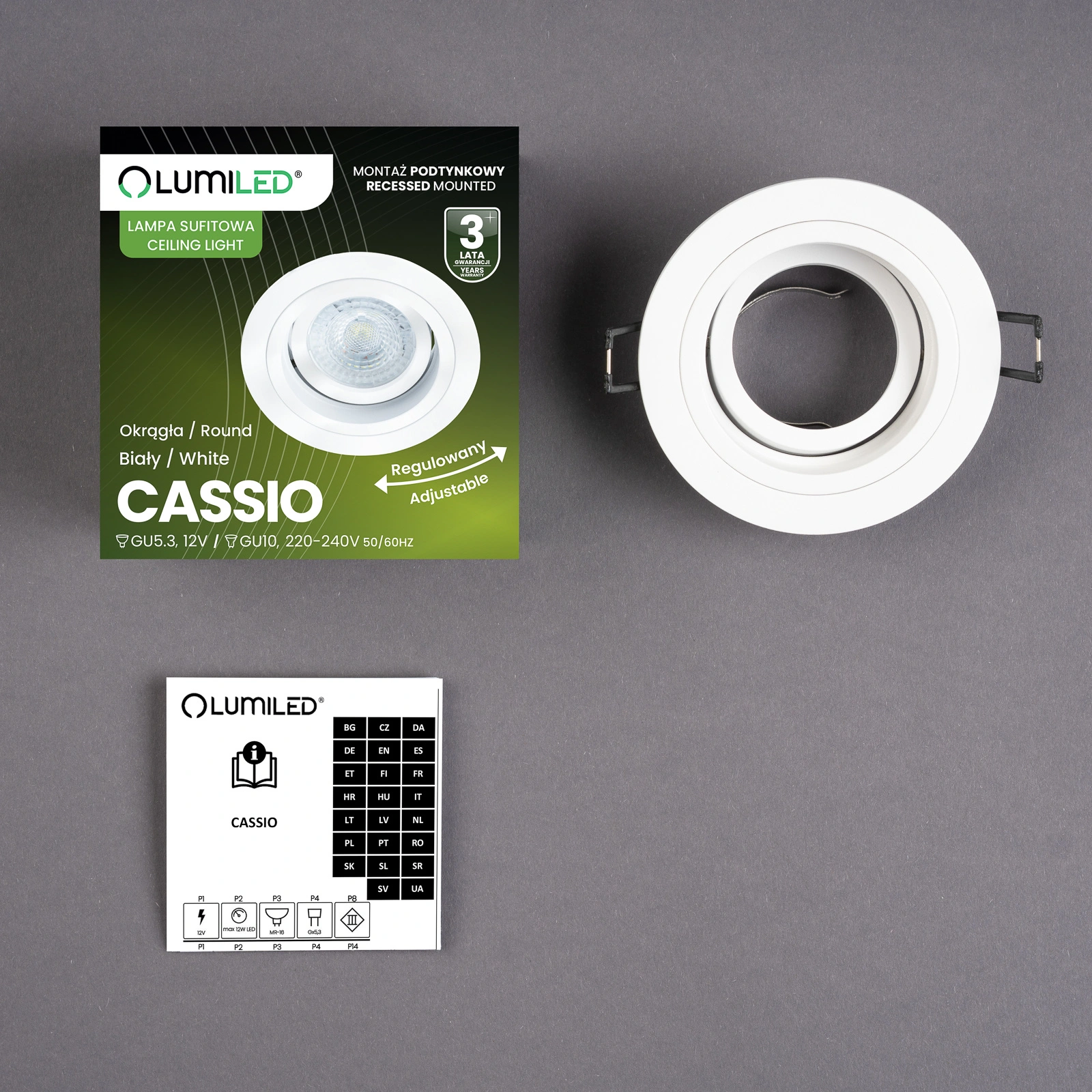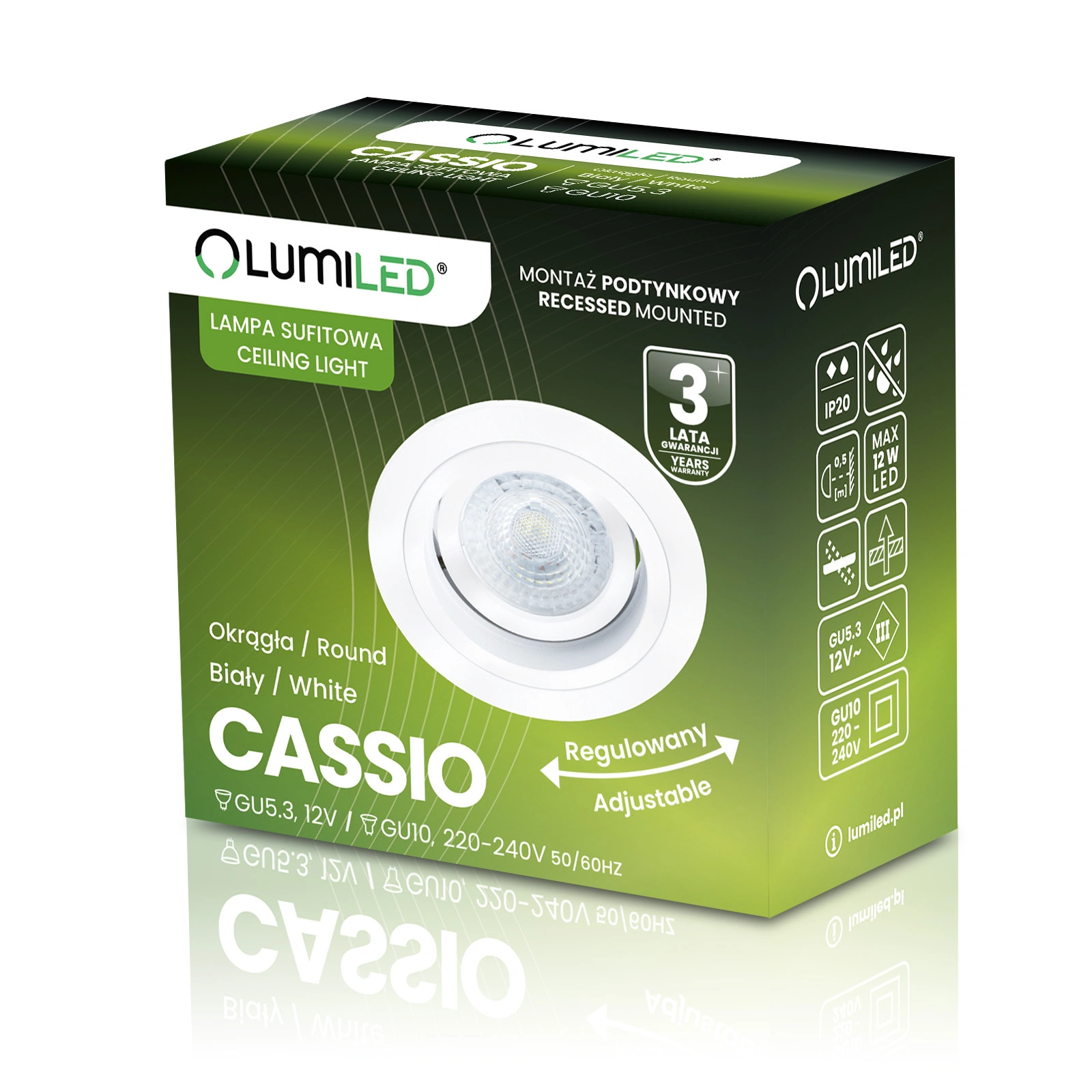 Einbauleuchte aus der CASSIO- Serie der in der Beleuchtungsbranche bekannten und anerkannten Marke Lumiled mit GU10-Sockel. Die Leuchte eignet sich perfekt für jeden Haushalt, jedes Geschäft, jedes Hotel oder Restaurant als Akzent- oder Dekorationsbeleuchtung.