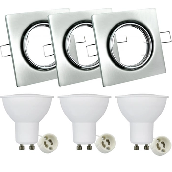 Set aus 3x beweglichen Halogenlampen GOLDLUX (Polux), quadratisch, Nickel + GU10 3,5W LED Lampen