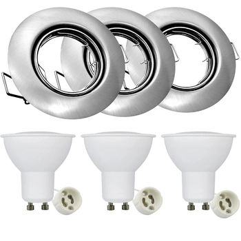 Set aus 3x beweglichen Halogenlampen GOLDLUX (Polux), rund, Nickel + GU10 3,5W LED Lampen