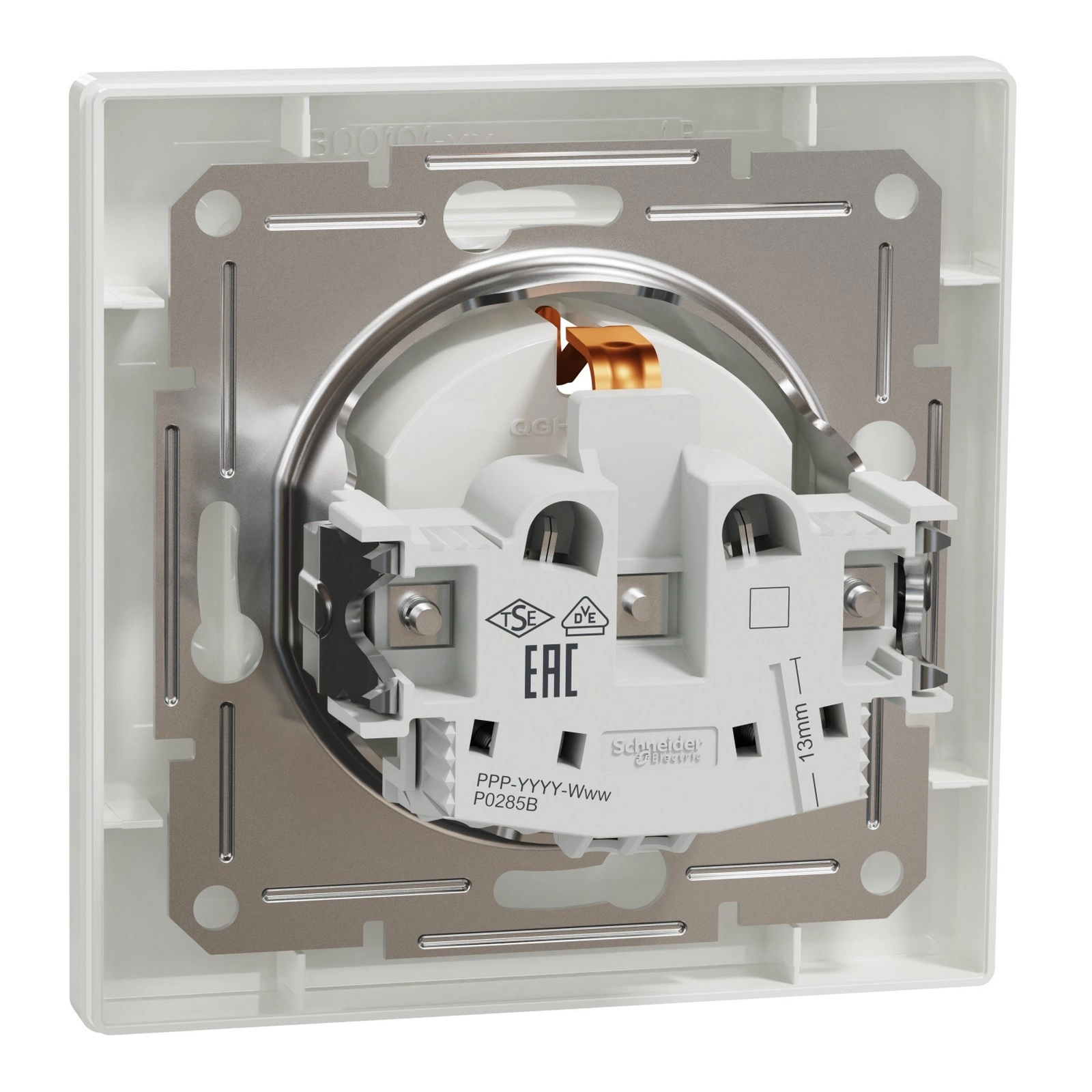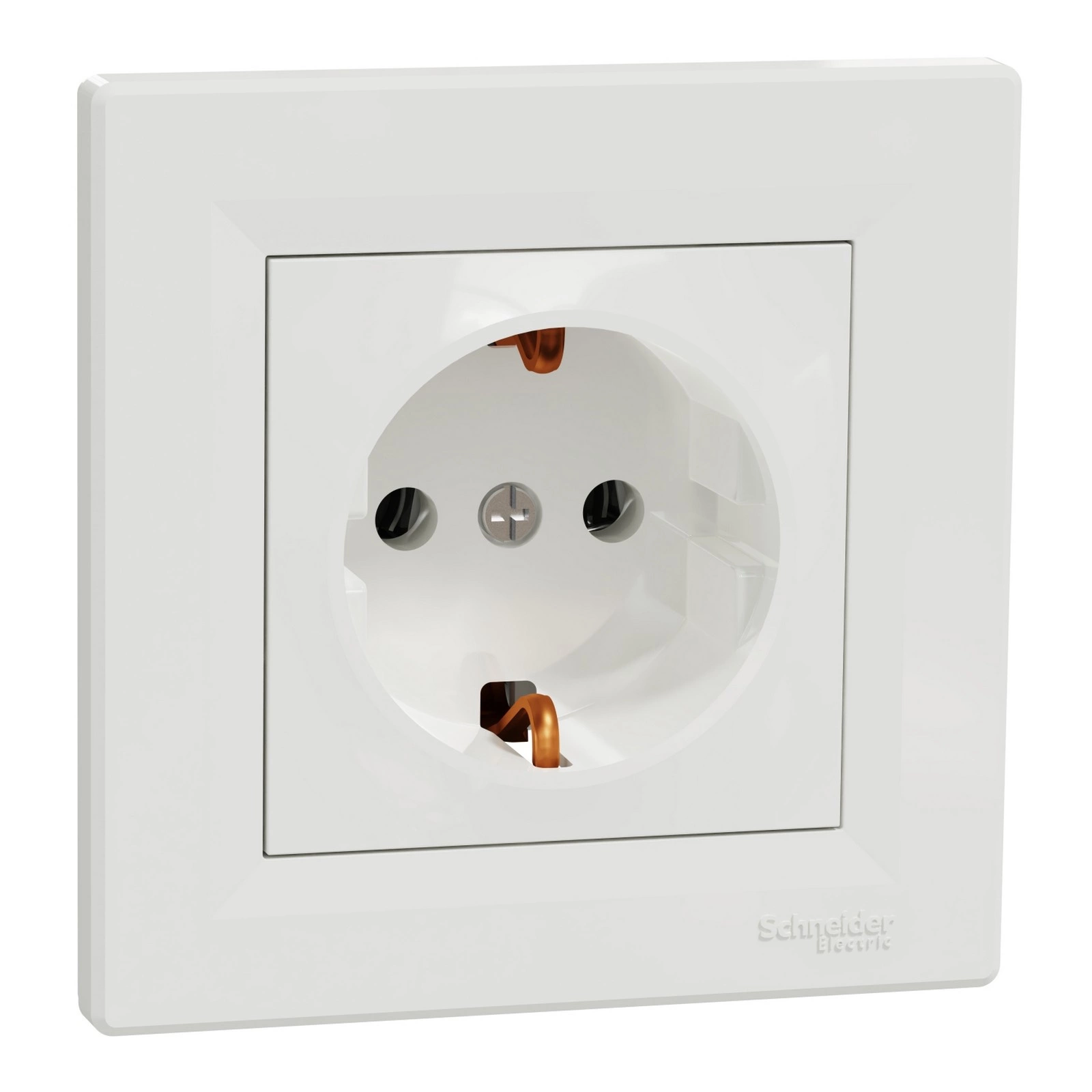 Standard-Einzelsteckdose mit seitlichen Erdungskontakten in Weiß für die Unterputzmontage. Die vorgestellte Steckdose dient dem Anschluss elektrischer Geräte . Der Mechanismus verfügt über ein klares Diagramm und Anschlussmarkierungen für einen einfachen Anschluss. Die Ausstattung besteht aus hochwertigem Kunststoff. Sehr gut sitzende Tasten und Gehäuseelemente gewährleisten eine sichere Nutzung über viele Jahre. Das Green Premium-Label ist das Engagement von Schneider Electric, Produkte mit der höchsten Umweltleistung ihrer Klasse anzubieten.