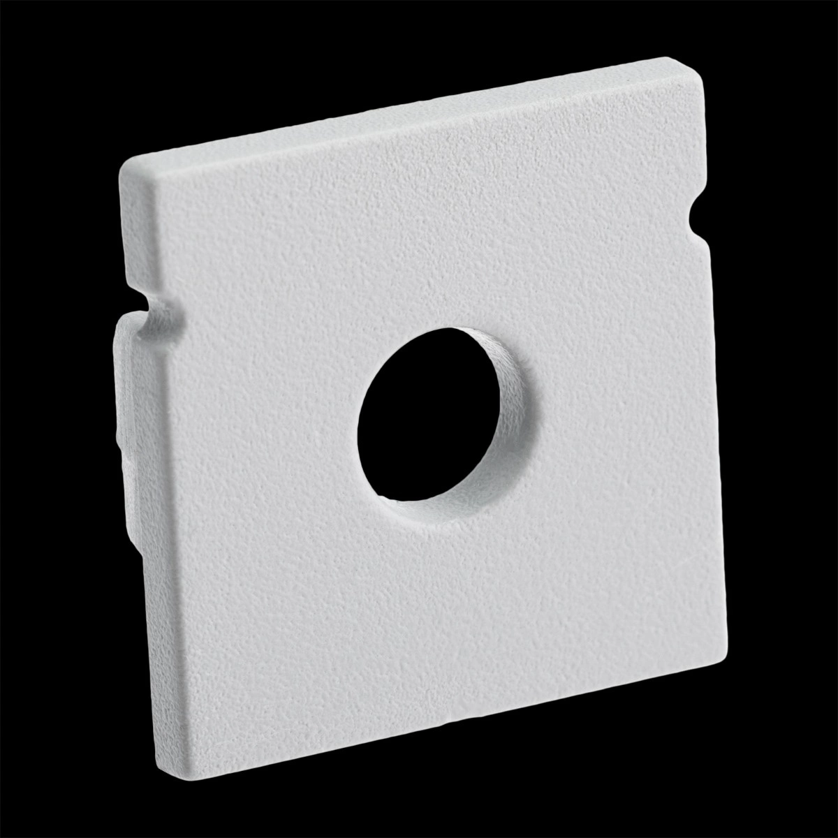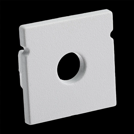 Der Profilstopfen KM38 mit Loch ist eine sorgfältig gefertigte Spitze, die einen ästhetischen Abschluss des Profils ermöglicht. Die Kappe passt perfekt in das eloxierte Silberprofil. Es verhindert, dass Staub in sein Inneres eindringt. Dank dieses kleinen Elements können Sie den Querschnitt der Leuchte und die darin platzierten LEDs sauber verbergen.