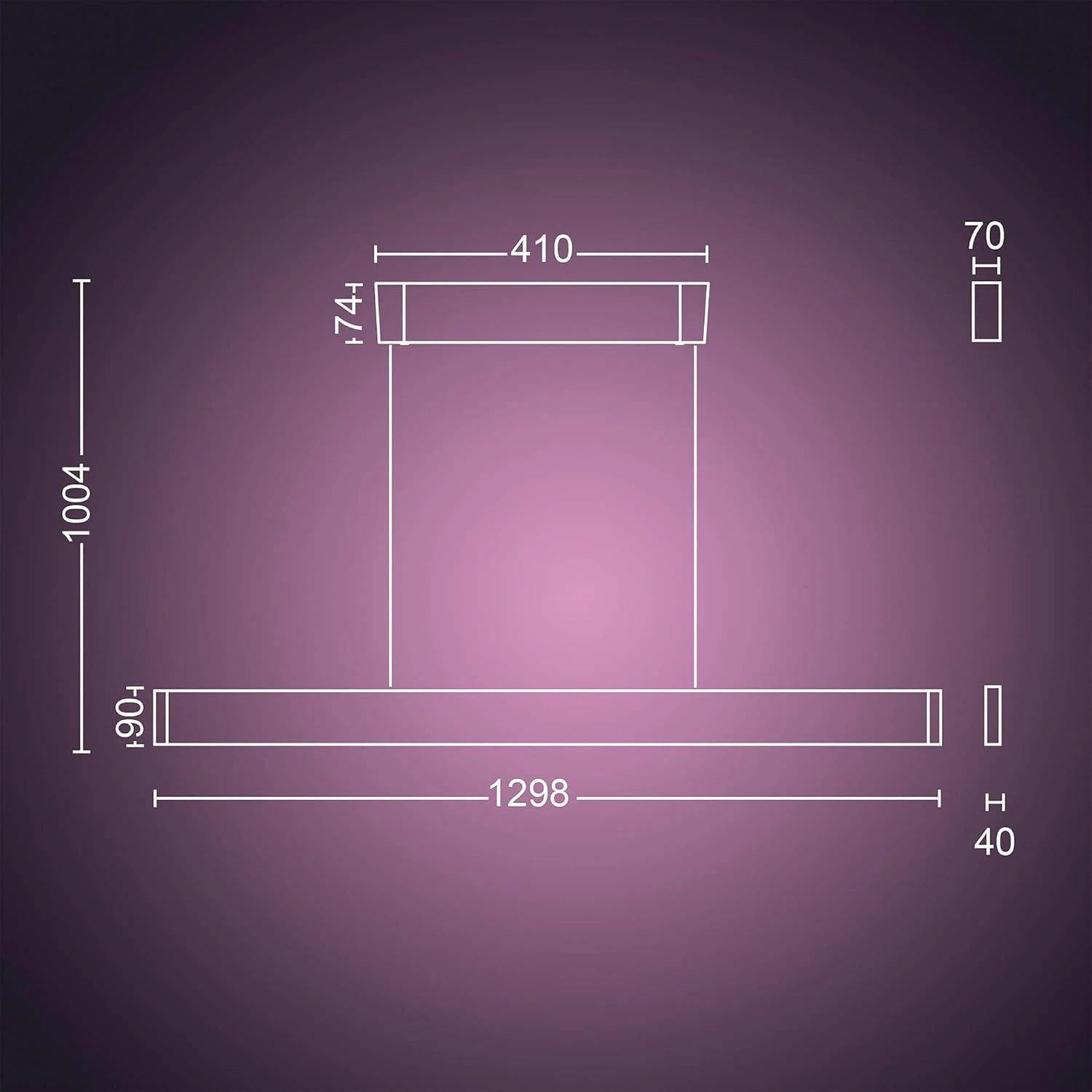 HUE LED Pendel-Deckenleuchte in der Beleuchtungsindustrie bekannt und respektiert Philips. Leuchte mit einer integrierten LED-Lichtquelle von 79W und sehr effiziente Lichtleistung - 5500lm, strahlt warmes, angenehmes und entspannendes Licht, mit 16 Millionen RGB-Farben i eine breite Palette von weißem Licht, mit denen wir für jede Gelegenheit eine passende Stimmung schaffen können. ENSIS-Deckenleuchte fügt sich nicht nur dank seines schlanken, stilvollen Gehäuses perfekt in die Einrichtung des Hauses ein, sondern bietet auch die Möglichkeit licht nach unten und oben abzustrahlen gewährleistung einer funktionellen Beleuchtung. Diese Lampe kann unabhängig oder als Teil eines intelligenten Beleuchtungssystems betrieben werden, indem sie an eine Hue-Bridge angeschlossen wird.