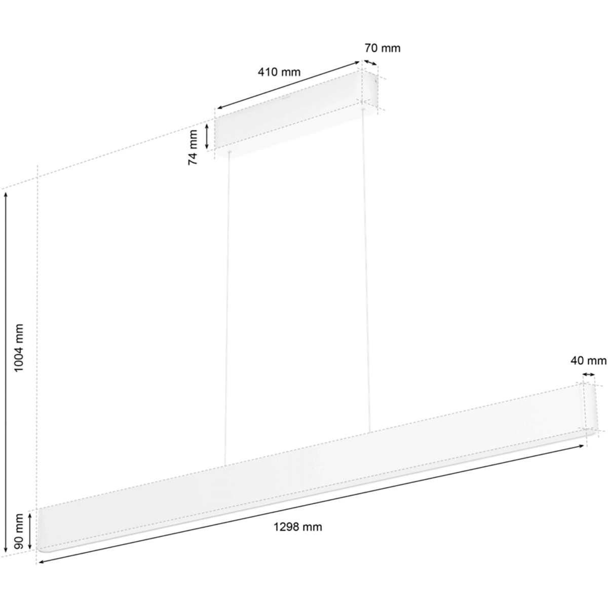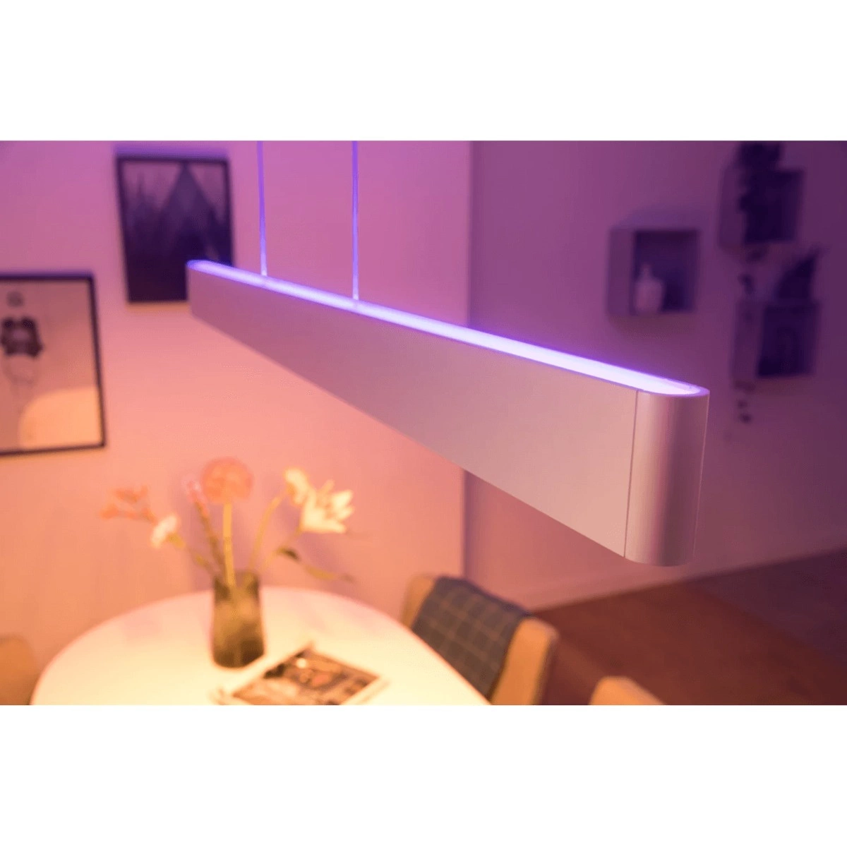 HUE LED Pendel-Deckenleuchte in der Beleuchtungsindustrie bekannt und geachtet Philips. Leuchte mit einer integrierten LED-Lichtquelle von 79W und sehr effiziente Lichtleistung - 5500lm, strahlt warmes, angenehmes und entspannendes Licht, mit 16 Millionen RGB-Farben i eine breite Palette von weißem Licht, mit denen wir für jede Gelegenheit eine passende Stimmung schaffen können. ENSIS-Deckenleuchte fügt sich nicht nur dank seines schlanken, stilvollen Gehäuses perfekt in die Einrichtung des Hauses ein, sondern bietet auch die Möglichkeit licht nach unten und oben abzustrahlen gewährleistung einer funktionellen Beleuchtung. Diese Lampe kann unabhängig oder als Teil eines intelligenten Beleuchtungssystems betrieben werden, indem sie an eine Hue-Bridge angeschlossen wird.
