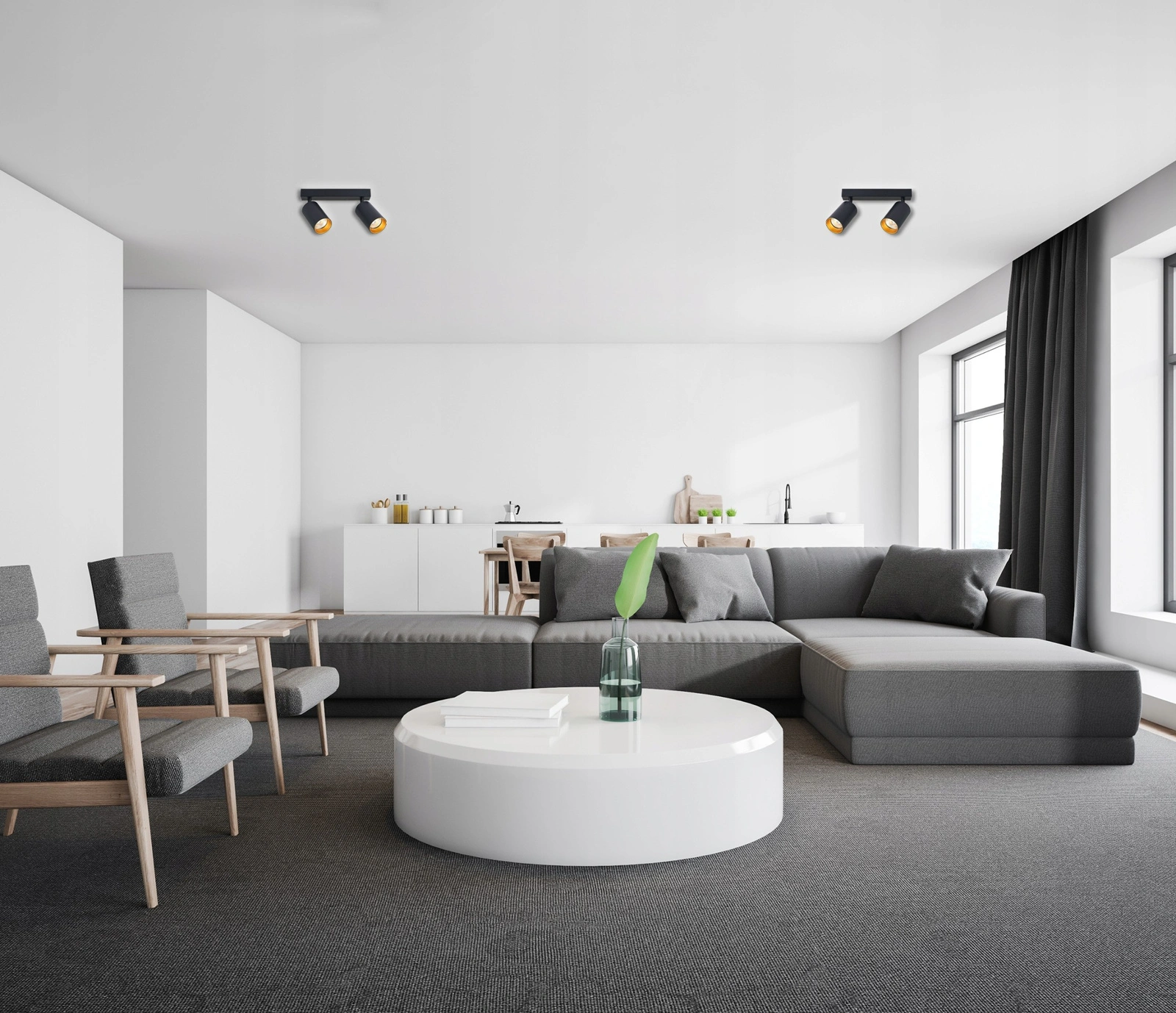 Eine Decken-/Wandleuchte mit zwei Lichtpunkten im modernen Stil ist in der Lage, selbst den dunkelsten Raum zu erhellen und eine gemütliche, angenehme und helle Atmosphäre zu schaffen. TUBA ist eine auffällige Dekoration, eignet sich auch für gewerbliche Räume wie eine Bar oder ein stimmungsvolles Restaurant und ist auch eine perfekte Ergänzung zu modernen, glamourösen oder traditionellen Innenräumen, indem es ihnen Charme verleiht und deren Aussehen verändert. Wenn wir uns für die Deckenleuchte Eris Gold entscheiden, können wir die Position ihrer Lampenschirme in zwei Ebenen stufenlos anpassen, 90° vertikal und 350° um die eigene Achse. Dadurch können Sie den ausgewählten Raum entsprechend Ihren Bedürfnissen beleuchten. Die Lampe ist für den Betrieb mit einer energiesparenden LED-Lichtquelle mit GU10-Sockel konzipiert, die Ihnen nach der Installation einen schön beleuchteten Raum mit geringen Wartungskosten ermöglicht (Einsparung von bis zu 90 %).