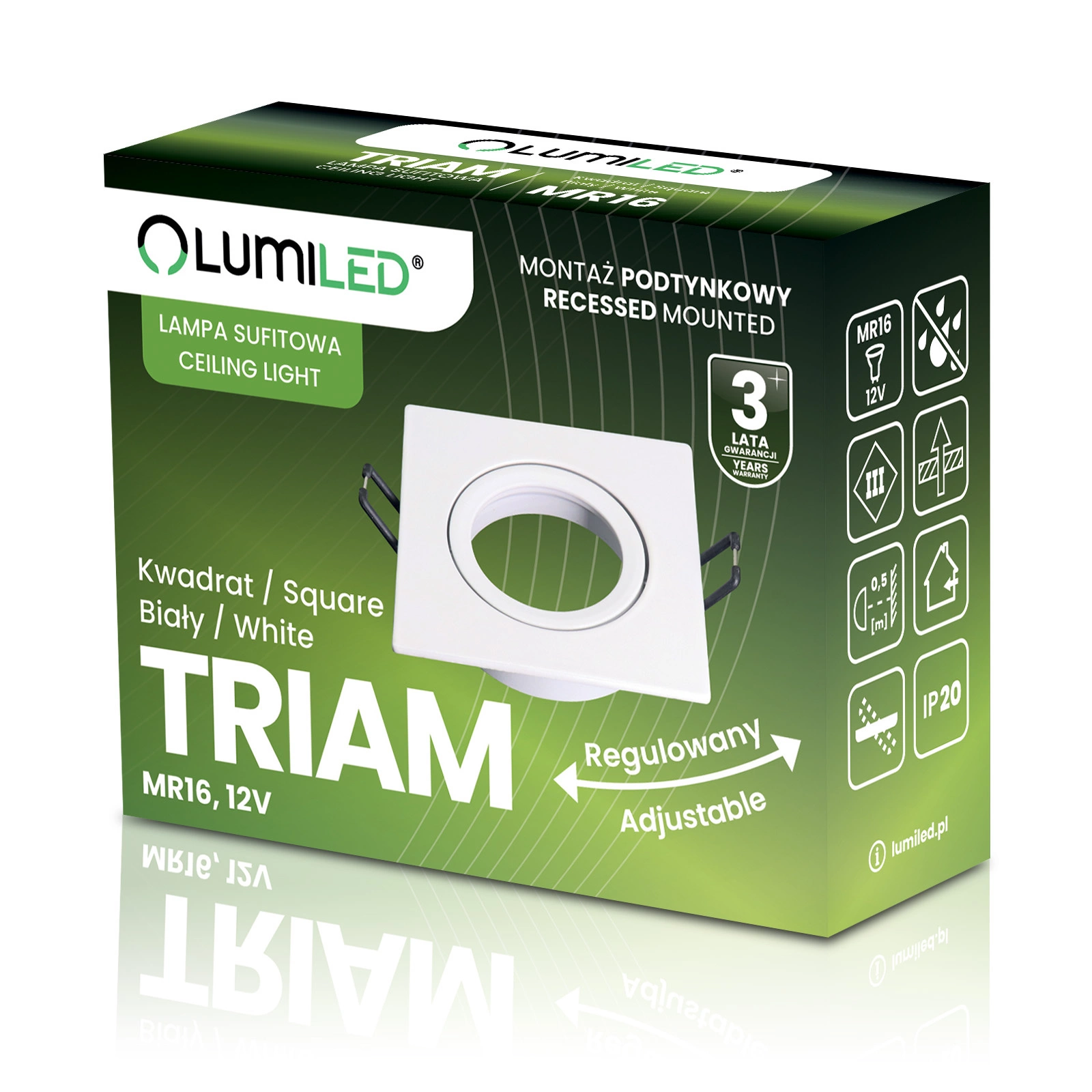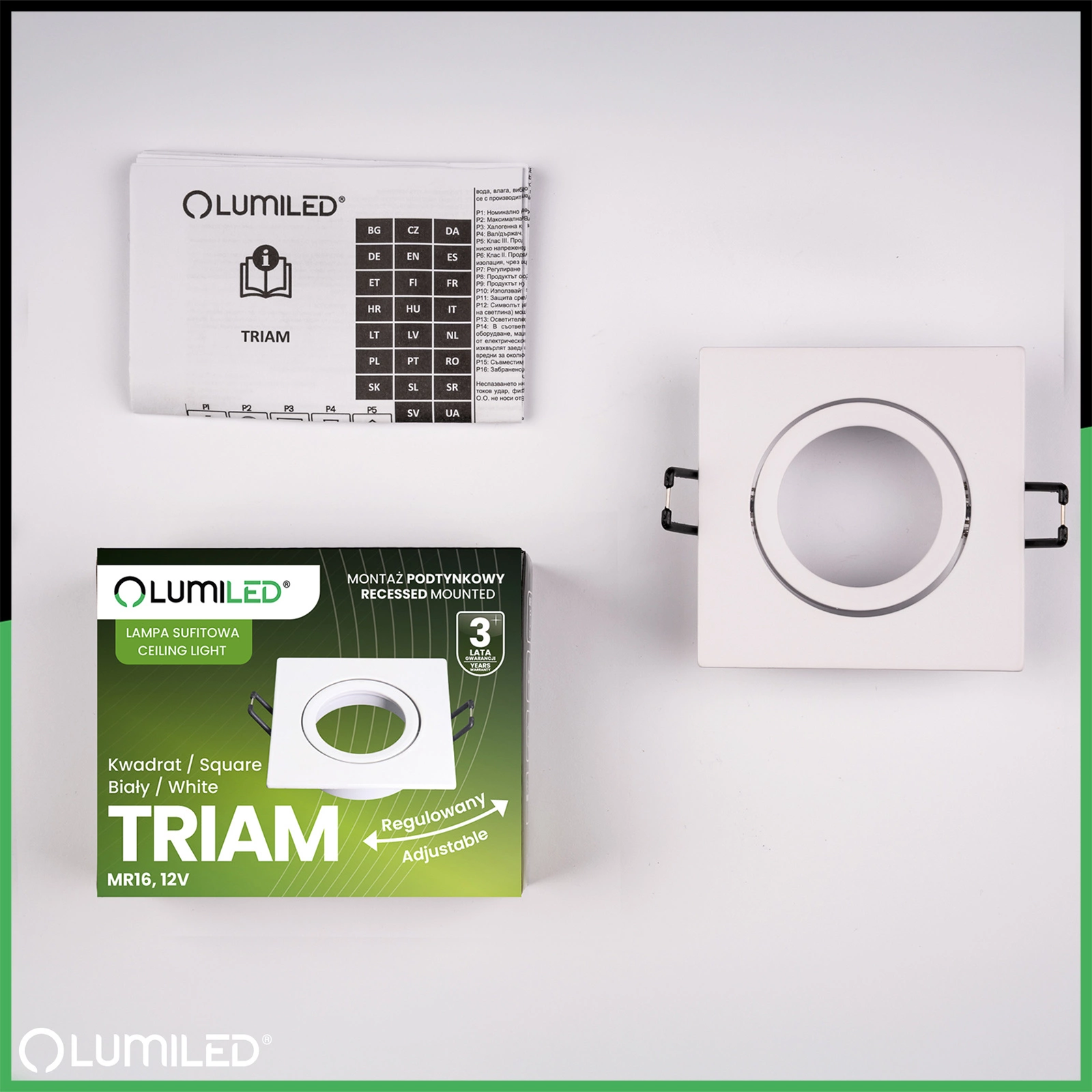 Die quadratische Deckenleuchte TRIAM von Lumiled ist die ideale Wahl für alle, die modernes Design und praktische Lösungen schätzen. Ihre quadratische Form verleiht dem Innenraum einen unverwechselbaren geometrischen Charakter, und der verstellbare Ring ermöglicht es Ihnen, die Lichtrichtung präzise einzustellen. So haben Sie die volle Kontrolle über die Beleuchtung und können bestimmte Designelemente betonen. Die robuste Aluminiumkonstruktion garantiert Langlebigkeit und Ästhetik für viele Jahre, und die beliebte MR16-Fassung ermöglicht es Ihnen, ein Leuchtmittel in Ihrer bevorzugten Farbe und Wattstärke zu wählen. Diese Leuchte eignet sich sowohl als stilvoller Lichtakzent als auch als funktionale Hauptbeleuchtung in einem Raum.