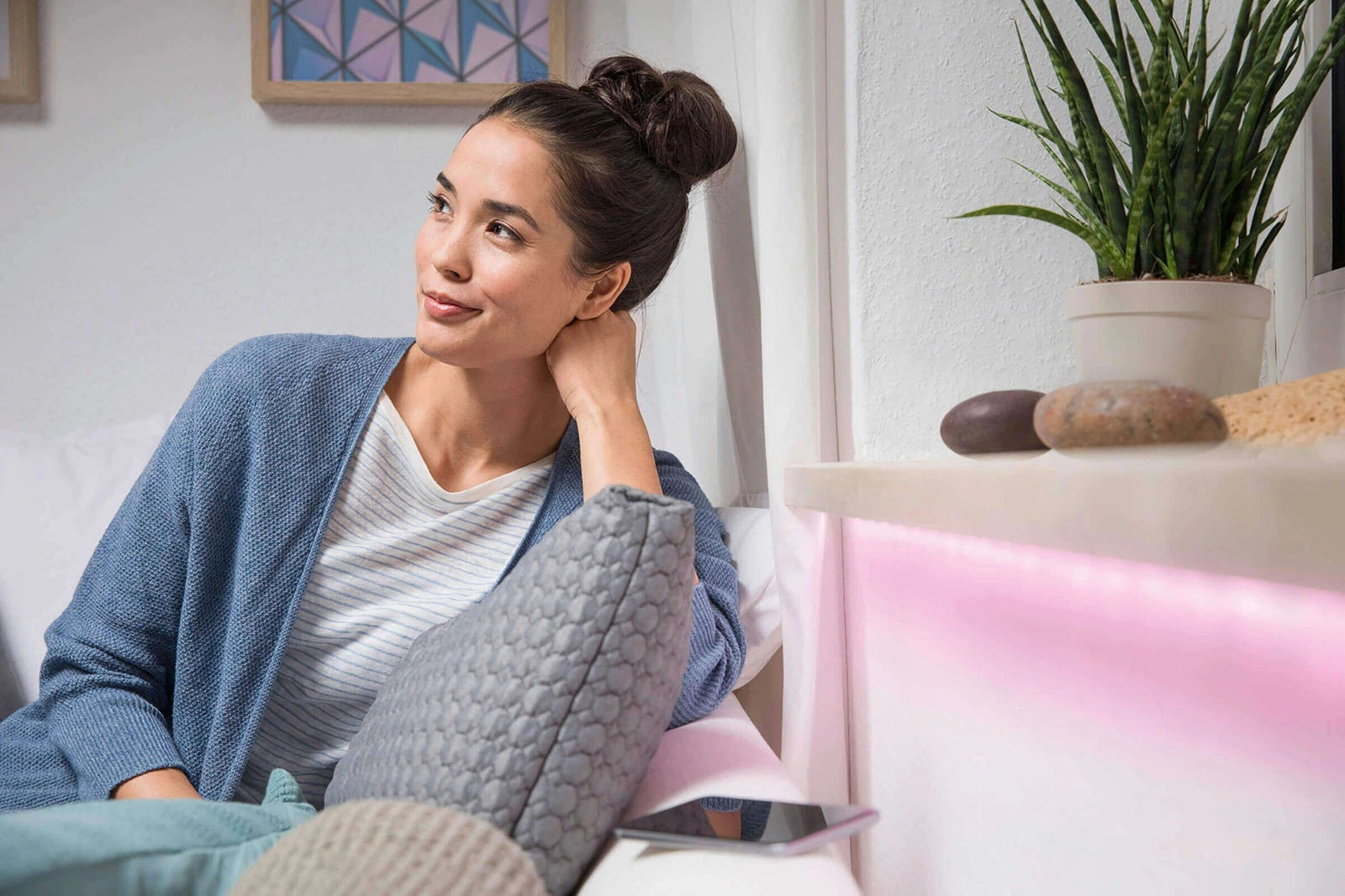 - Die Verbindung mit einem kompatiblen Smart-Home-Steuerungssystem (App und Gateway) ist erforderlich, um alle Vorteile zu nutzen.