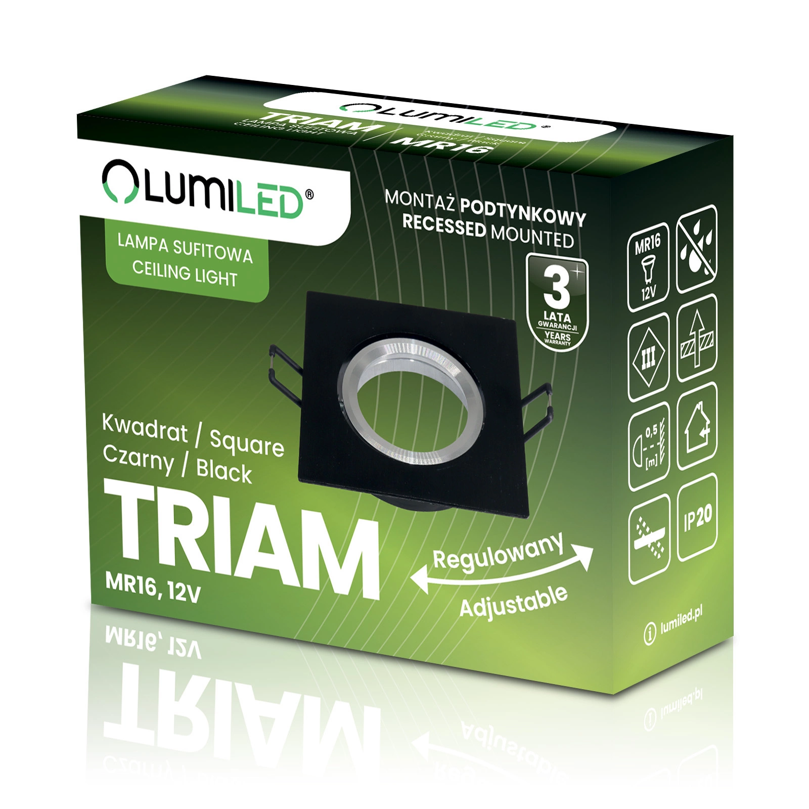 Die quadratische Deckenleuchte TRIAM von Lumiled ist die ideale Wahl für alle, die modernes Design und praktische Lösungen schätzen. Ihre quadratische Form verleiht dem Innenraum einen unverwechselbaren geometrischen Charakter, und der verstellbare Ring ermöglicht es Ihnen, die Lichtrichtung präzise einzustellen. So haben Sie die volle Kontrolle über die Beleuchtung und können bestimmte Designelemente betonen. Die robuste Aluminiumkonstruktion garantiert Langlebigkeit und Ästhetik für viele Jahre, und die beliebte MR16-Fassung ermöglicht es Ihnen, ein Leuchtmittel in Ihrer bevorzugten Farbe und Wattstärke zu wählen. Diese Leuchte eignet sich sowohl als stilvoller Lichtakzent als auch als funktionale Hauptbeleuchtung in einem Raum.