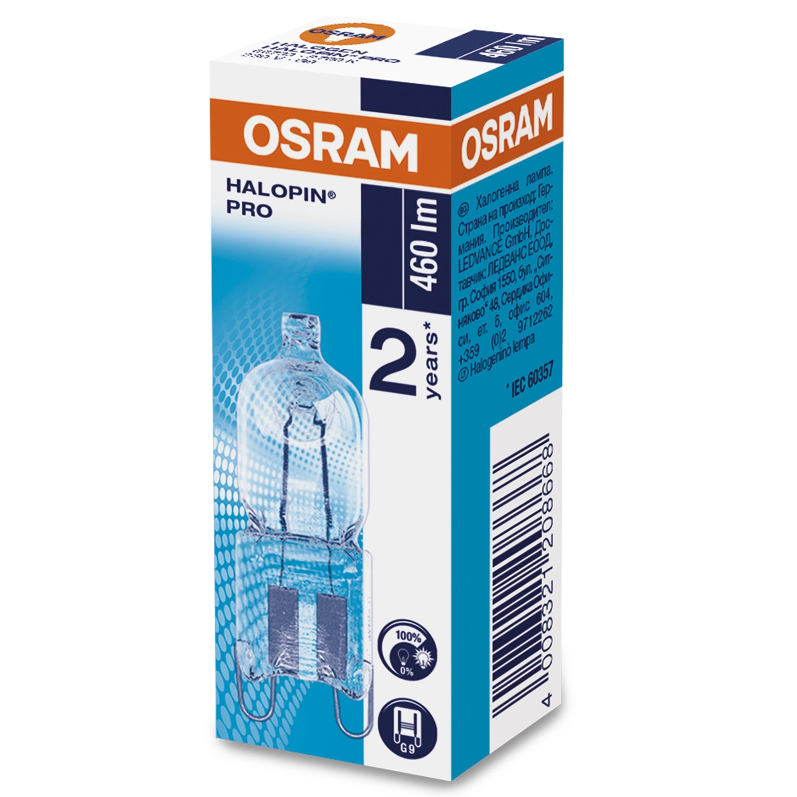 Glühbirne, Halogenkapsel aus der Halopin- Serie des renommierten und anerkannten Unternehmens OSRAM in der Beleuchtungsindustrie mit einem G9- Sockel und einer Leistung von 35 W. Die Kapsel strahlt warmes Licht mit einer Farbtemperatur von 2800 K aus. Dank seiner extrem geringen Abmessungen können Sie erstaunliche Lichtarrangements erstellen. Die Glühbirne eignet sich perfekt für die Arbeits- oder Dekorationsbeleuchtung in jedem Geschäft, Hotel oder Restaurant und kann in alle herkömmlichen Leuchten und Bürolampen mit G9-Sockel eingebaut werden . Der Austausch der Lichtquelle ist dank des Stecksockelsystems einfach und problemlos möglich. Die Glühbirne enthält kein Quecksilber und benötigt keinen Transformator.