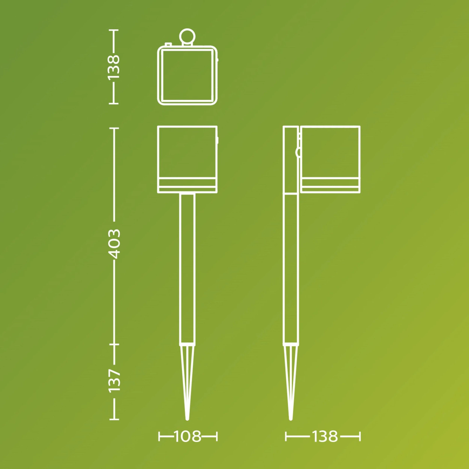 Die moderne Philips Solar-Gartenleuchte von Virona ist ideal für die Außenbeleuchtung. Dieser elegante, 54 cm hohe Mast ist mit einer 1,8-W-LED mit einer Helligkeit von 200 Lumen ausgestattet, die warmes Licht mit einer Farbtemperatur von 2700 K liefert. Ausgestattet mit einem Dämmerungssensor schaltet sich die Lampe nach Einbruch der Dunkelheit automatisch ein und garantiert so Komfort und Energieeinsparung.