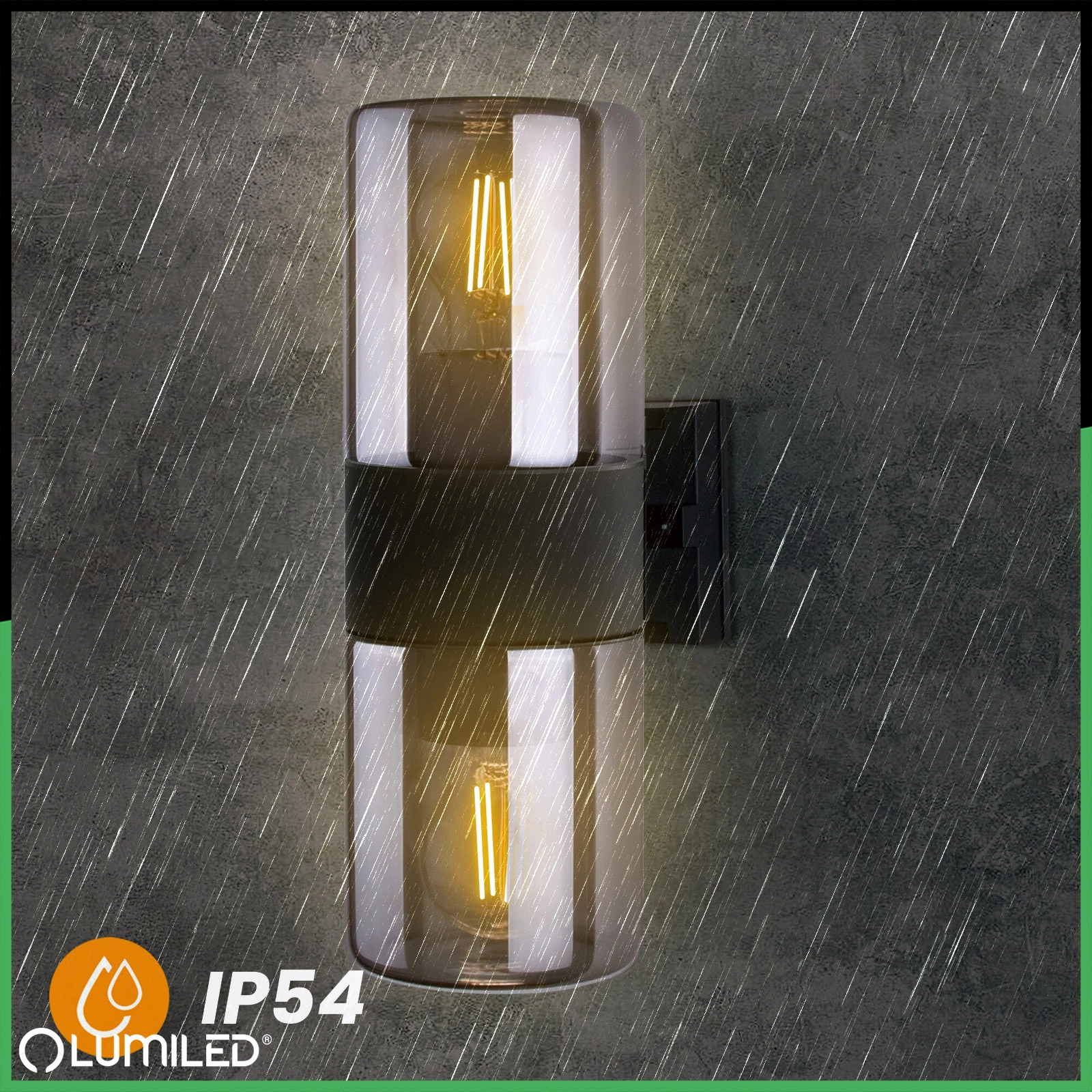 Die moderne Form der Wandleuchte unterstreicht die Architektur des Gebäudes und verleiht dem Raum um das Haus herum Eleganz. Das Gehäuse aus ABS-Kunststoff ist langlebig und widerstandsfähig gegen Bruch, Regen, Frost und UV-Strahlung. Die Rauchglasschirme streuen das Licht gleichmäßig, schaffen eine angenehme Atmosphäre und verbessern die Sicht bei Dunkelheit. Es ist eine Kombination aus Funktionalität und Ästhetik, die den Komfort realistisch steigert.