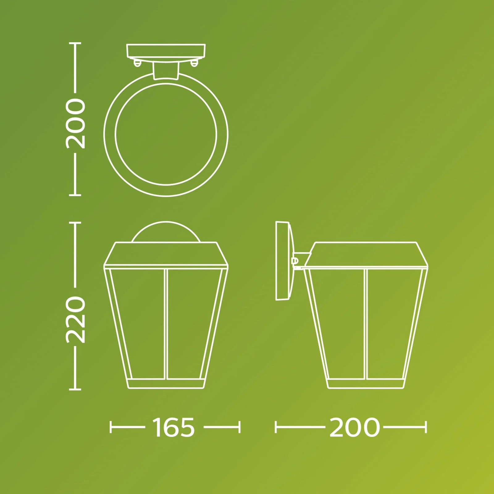 Die Philips Außenlampe wurde speziell für feuchte Umgebungen im Freien entwickelt und streng auf ihre Wasserbeständigkeit getestet. Die Schutzart IP44 bedeutet, dass sie zum Schutz vor Staub und Spritzwasser zertifiziert wurde - sie ist also ideal für die allgemeine Verwendung im Freien.