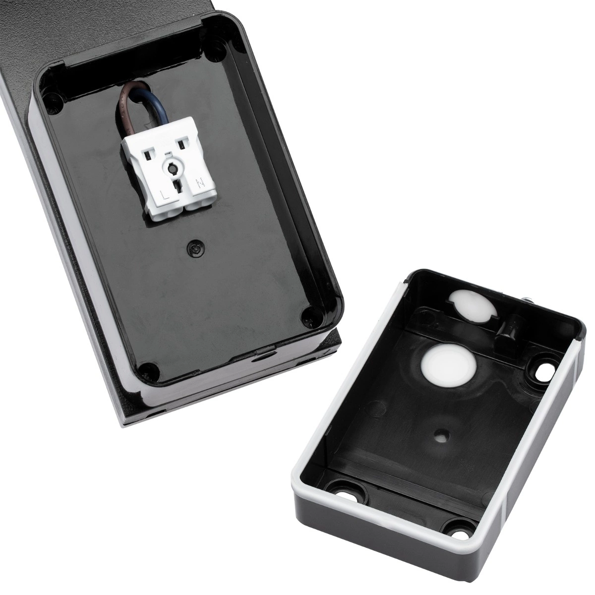 Die Gartenwandleuchte, Fassade in Schwarz (RAL 9005), ist eine Leuchte aus hochwertigem Aluminium und Kunststoff. Die Verwendung von Aluminium bei der Herstellung der Lampe macht sie langlebig, leicht und daher einfach zu installieren. Die Wandleuchte ist mit einer eingebauten 10-W-LED-Lichtquelle ausgestattet . Die Lampe bietet einen Lichtstrom von 750 lm und strahlt gleichzeitig Licht mit einer neutralen Lichtfarbe von 4000 K aus.