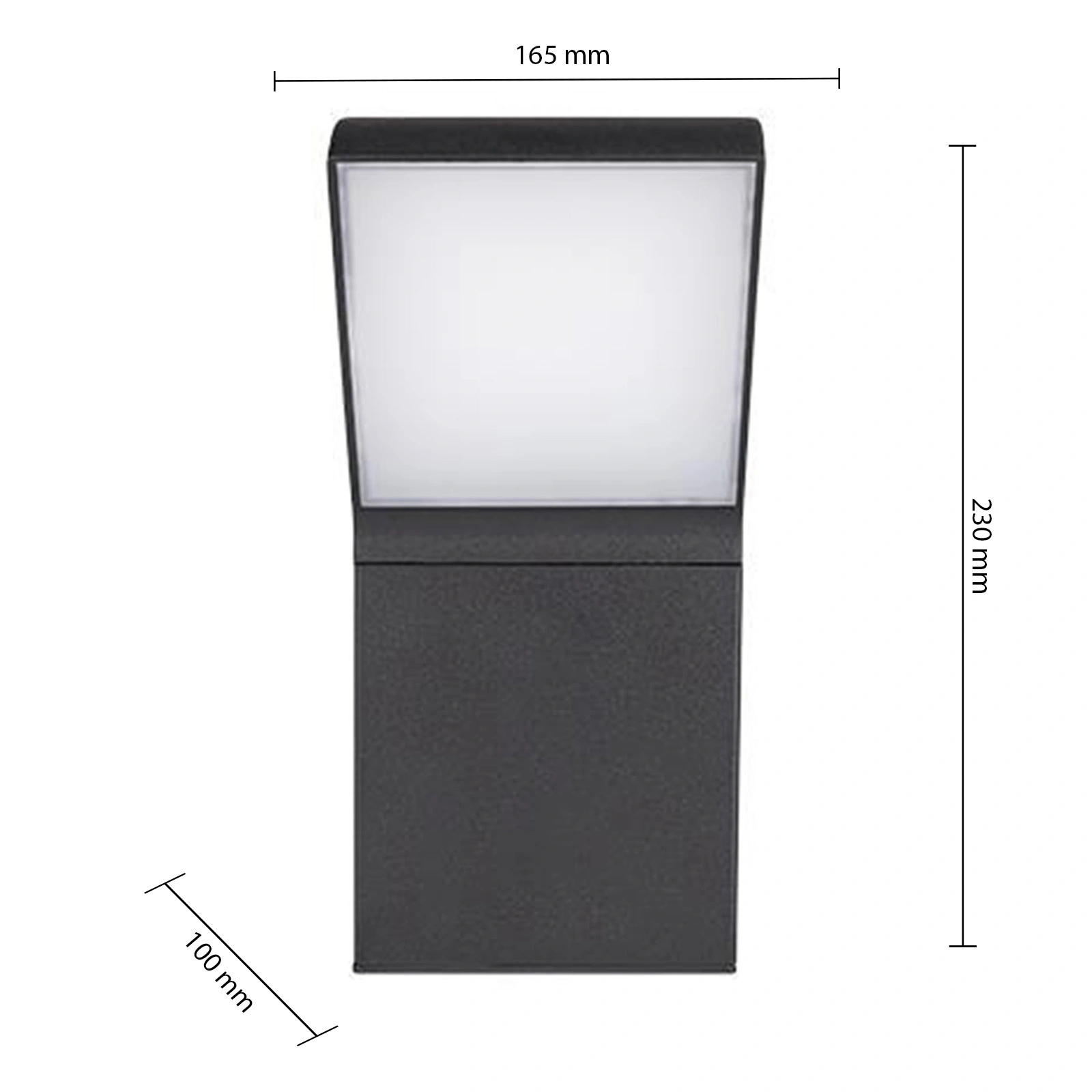 Die Gartenwandleuchte, Fassade, dunkelgrau (RAL 7021), ist eine Leuchte aus hochwertigem Aluminium und Kunststoff. Die Verwendung von Aluminium bei der Herstellung der Lampe macht sie langlebig, leicht und daher einfach zu installieren. Die Wandleuchte ist mit einer eingebauten 12-W-LED-Lichtquelle ausgestattet . Die Lampe bietet einen Lichtstrom von 550 lm und strahlt gleichzeitig Licht mit einer neutralen Lichtfarbe von 4000 K aus.