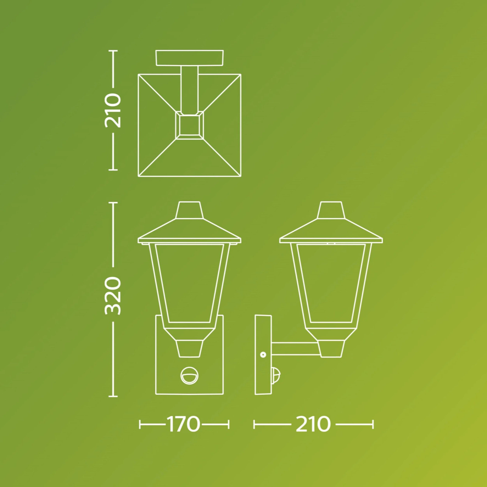 Garten-Wandleuchte Outdoor Laterne E27 IP44 mit Bewegungs- und Dämmerungssensor Schwarz Kinno Philips