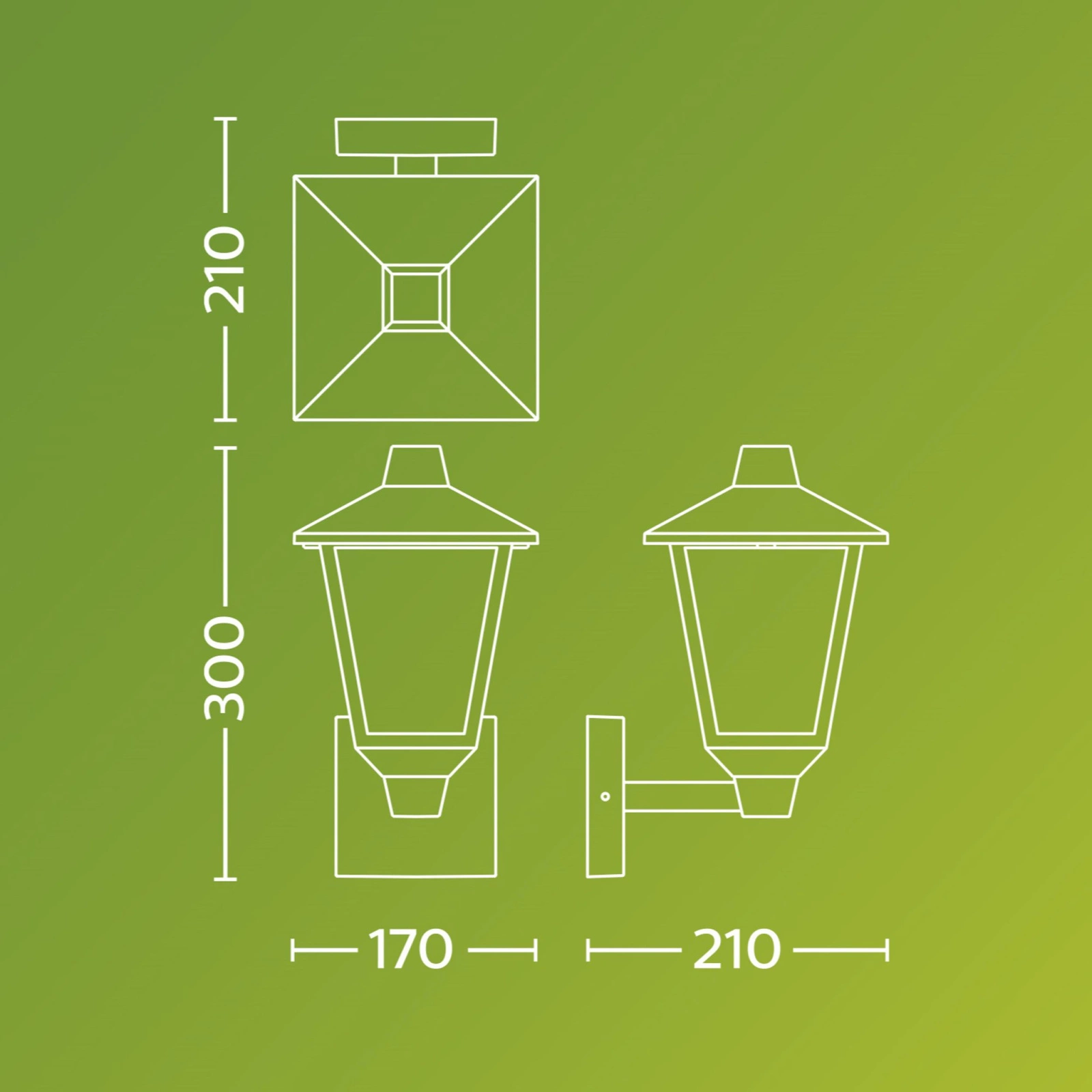 Die Kinno Philips E27 IP44 Outdoor Lantern Garden Wall Lamp ist ein einzigartiges Produkt von Kinno Philips, das klassischen Stil mit moderner Funktionalität perfekt kombiniert. Die Lampe ist aus hochwertigen Materialien gefertigt und dank der Schutzart IP44 wetterfest. Die schwarze Konstruktion verleiht ihr ein elegantes Aussehen, das sich perfekt in eine Vielzahl von Garten- und Fassadengestaltungen einfügt.