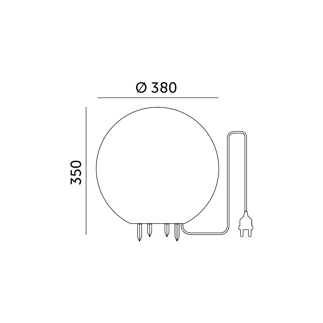 KUGELDIMENSION - Der Ball hat einen Durchmesser von 38cm und eine Höhe von 35cm, die Länge des Netzkabels beträgt 2m.