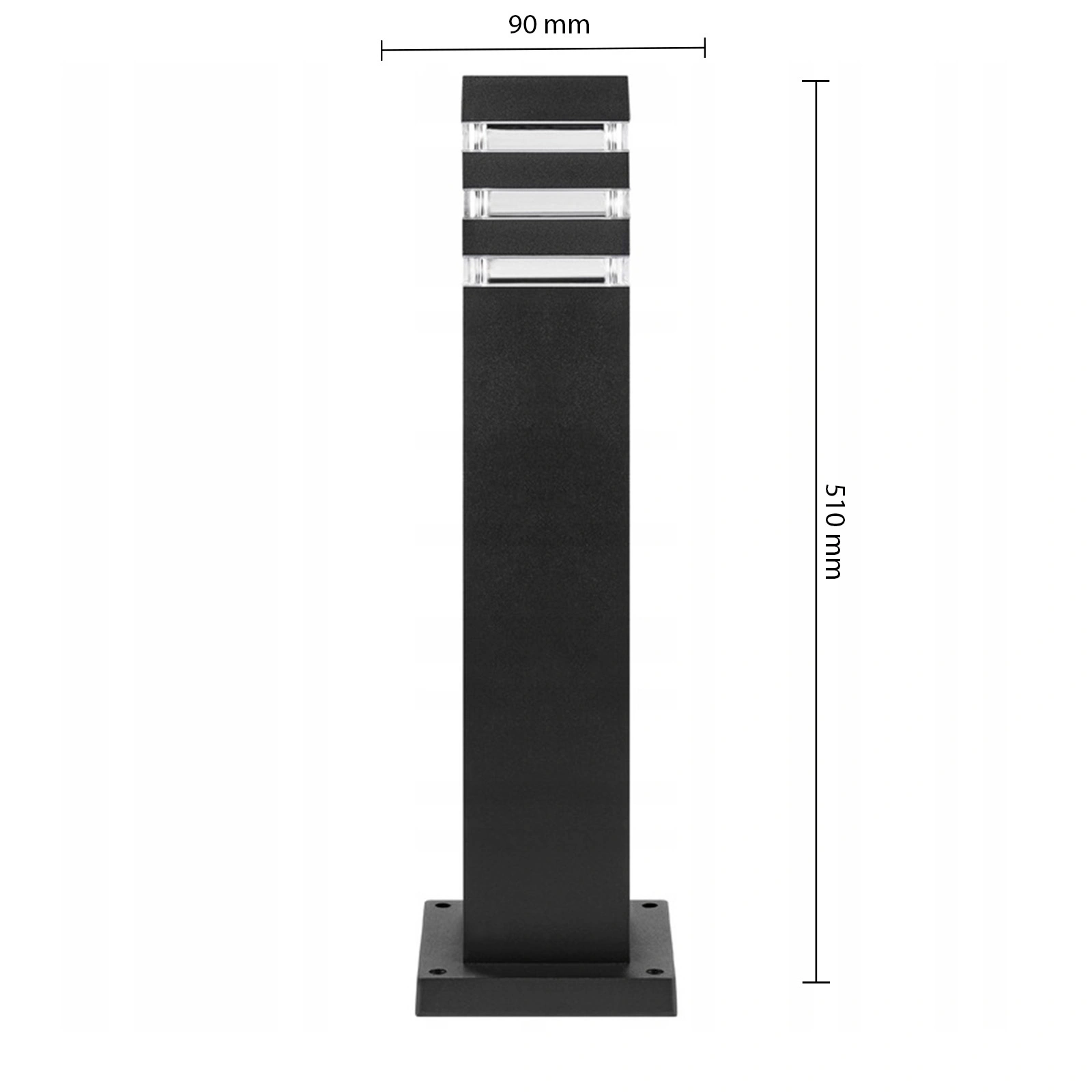 Gartenlampe für den Außenbereich, E27, Schwarzer Pfosten, quadratisch, 50 cm