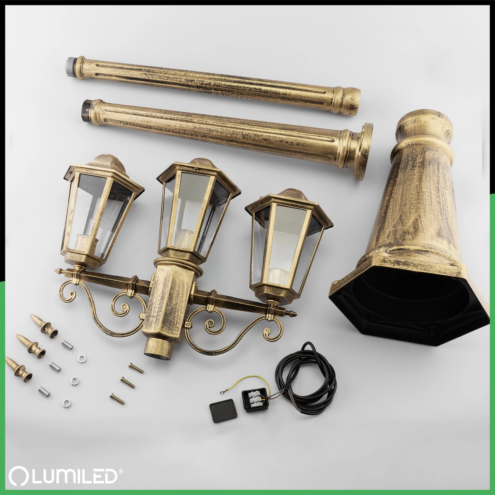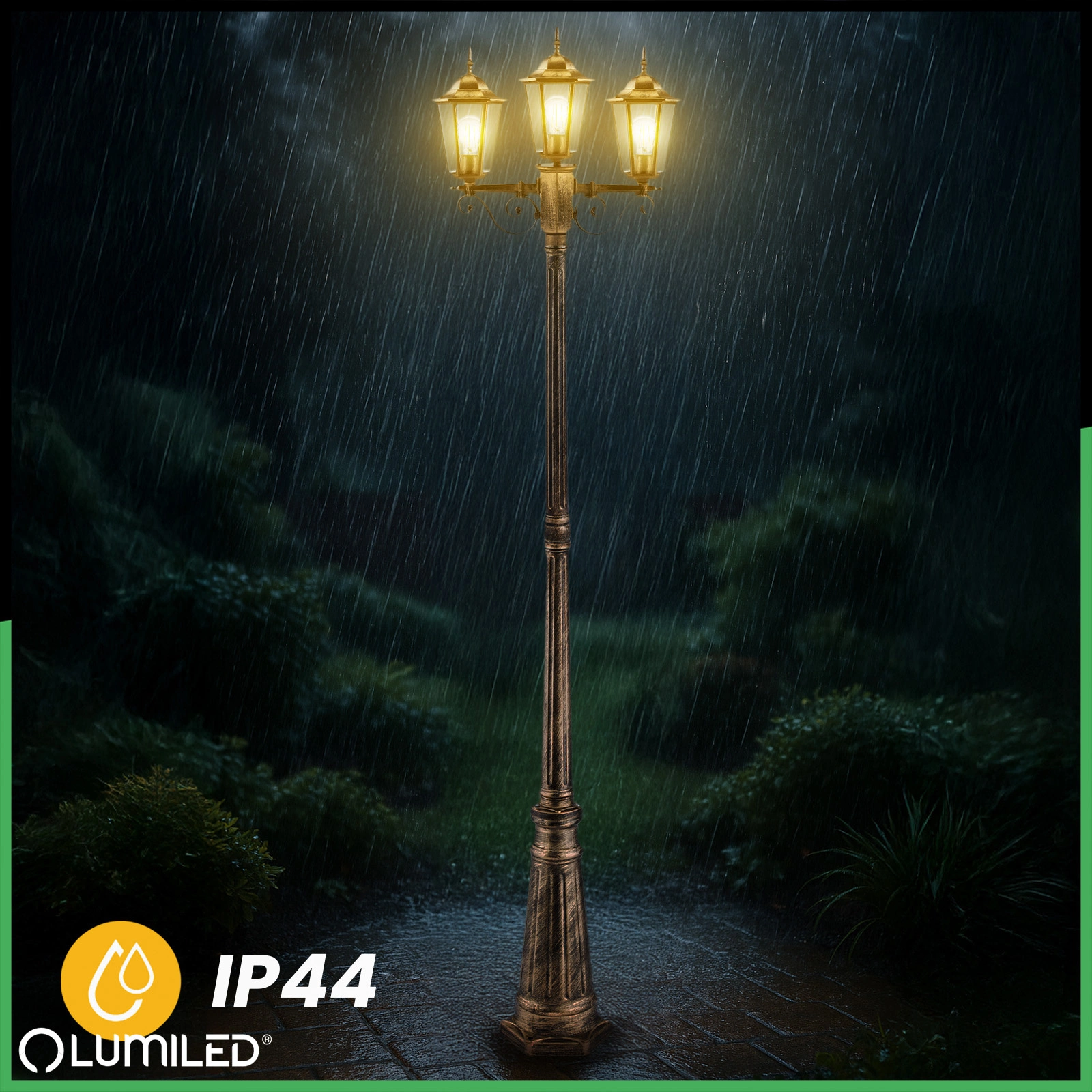 Die Gartenlaterne der Serie BELLIS von Lumiled ist eine Kombination aus Klassik und Moderne - ideal für alle, die eine elegante Gartenbeleuchtung suchen. Mit einer Höhe von 2 Metern kann sie einen größeren Raum effektiv beleuchten und schafft eine gemütliche Atmosphäre auf Wegen, Terrassen und im Grünen. Der Vintage- und Retro-Stil in Kombination mit der Patina-Farbgebung unterstreicht die Ästhetik des Gartens und fügt sich wunderbar in die natürliche Umgebung ein. Die Metallkonstruktion garantiert Langlebigkeit, während die dekorative Form sie nicht nur zu einer Lichtquelle, sondern auch zu einer auffälligen Dekoration macht.
