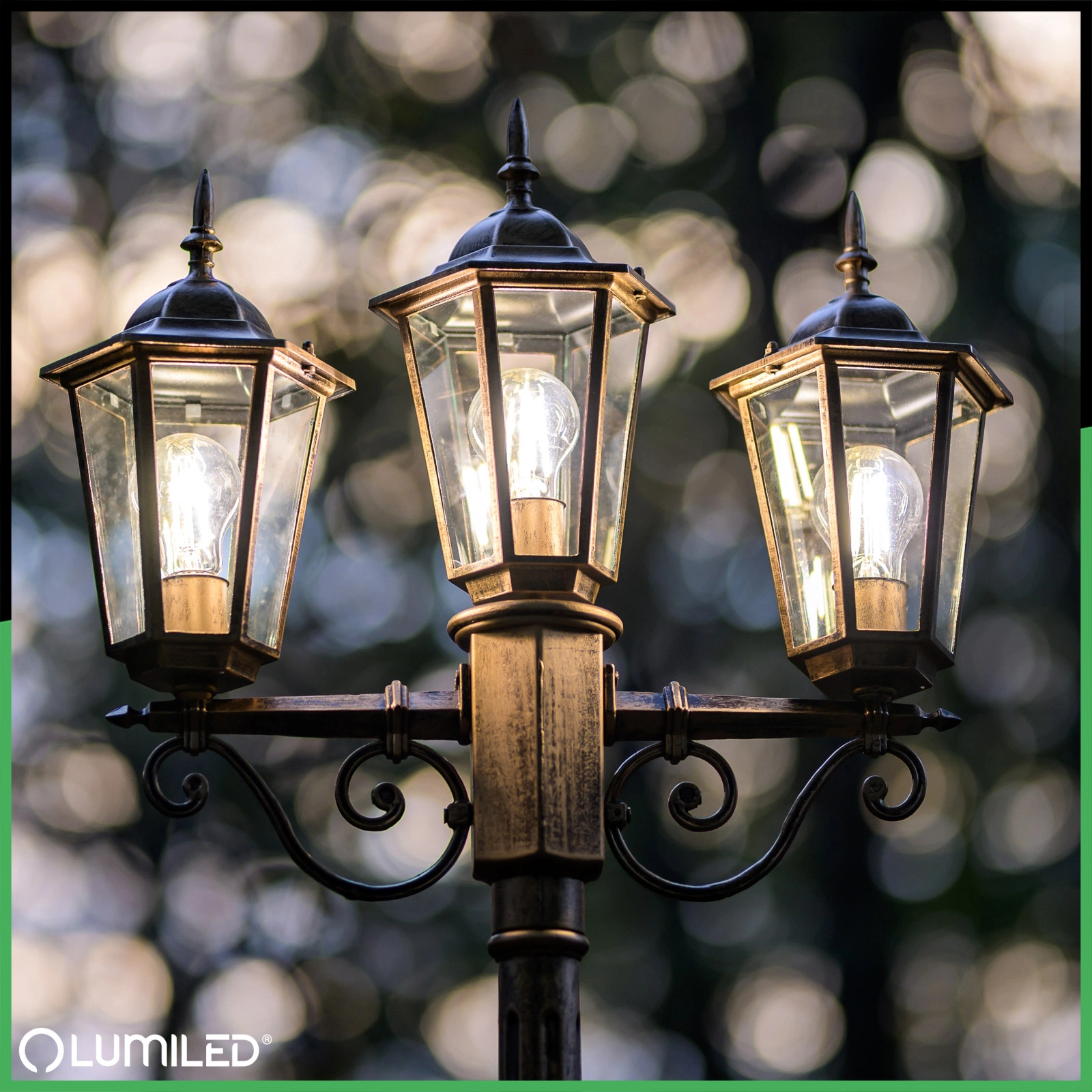 Der Standard-Schraubsockel E27 ermöglicht Ihnen die freie Wahl des LED-Leuchtmittels - Sie können Wattstärke und Farbe des Lichts selbst bestimmen und die Beleuchtung an den Charakter der Umgebung und Ihre individuellen Vorlieben anpassen. Ein austauschbares Leuchtmittel bedeutet geringere Betriebskosten, längere Lebensdauer der Leuchte und Komfort beim Austausch von Leuchtenkomponenten. Sie können die Art des Lichts jederzeit ändern - zum Beispiel auf wärmeres Licht in der Herbst-/Wintersaison oder helleres Licht im Sommer. Die 220-240-V-Stromversorgung ermöglicht den direkten Anschluss an das Stromnetz, was die Installation erheblich vereinfacht und den Einsatz in einer typischen Haus- oder Garteninstallation ermöglicht. So kann die Laterne an den unterschiedlichsten Orten installiert werden - vom Garten über die Einfahrt bis zum Eingangsbereich.