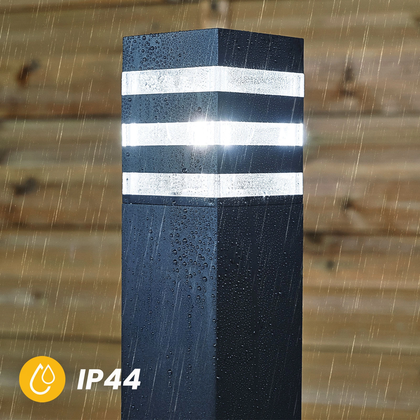 Unser Gartenmast verbindet Ästhetik mit Funktionalität und ist eine dauerhafte Ergänzung für jeden Außenbereich. Er ist aus Aluminium gefertigt, das witterungsbeständig ist, nicht rostet und eine robuste Struktur für viele Jahre garantiert. Außerdem ist sie aufgrund ihres geringen Gewichts leicht zu montieren und kann problemlos neu positioniert werden. Der Polycarbonat-Diffusor ist UV-beständig, so dass er nicht vergilbt und seine Klarheit über Jahre hinweg behält. Die Wahl dieser Materialien gewährleistet nicht nur die Langlebigkeit des Pfostens, sondern verleiht ihm auch ein elegantes Aussehen, das jeden Garten verschönert.