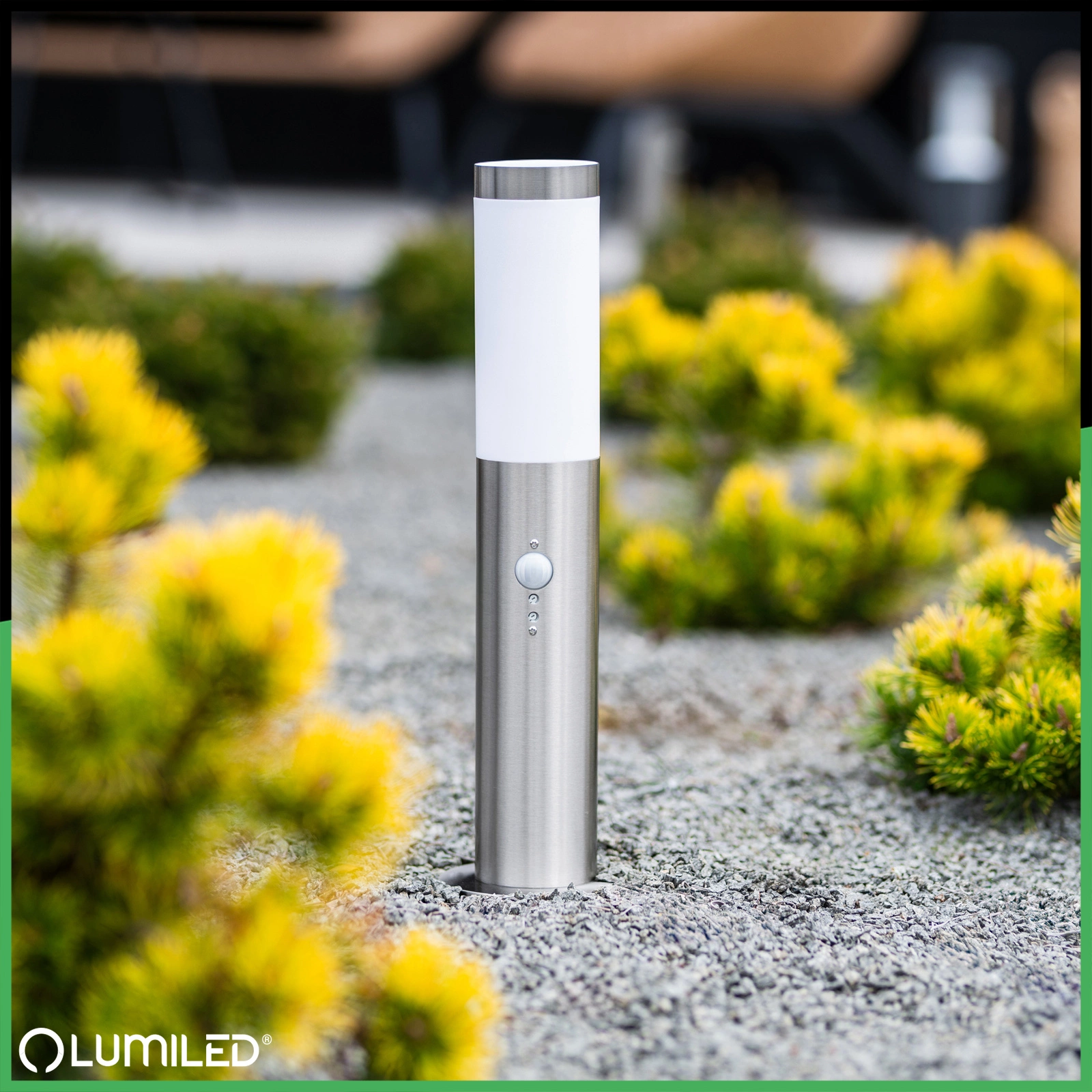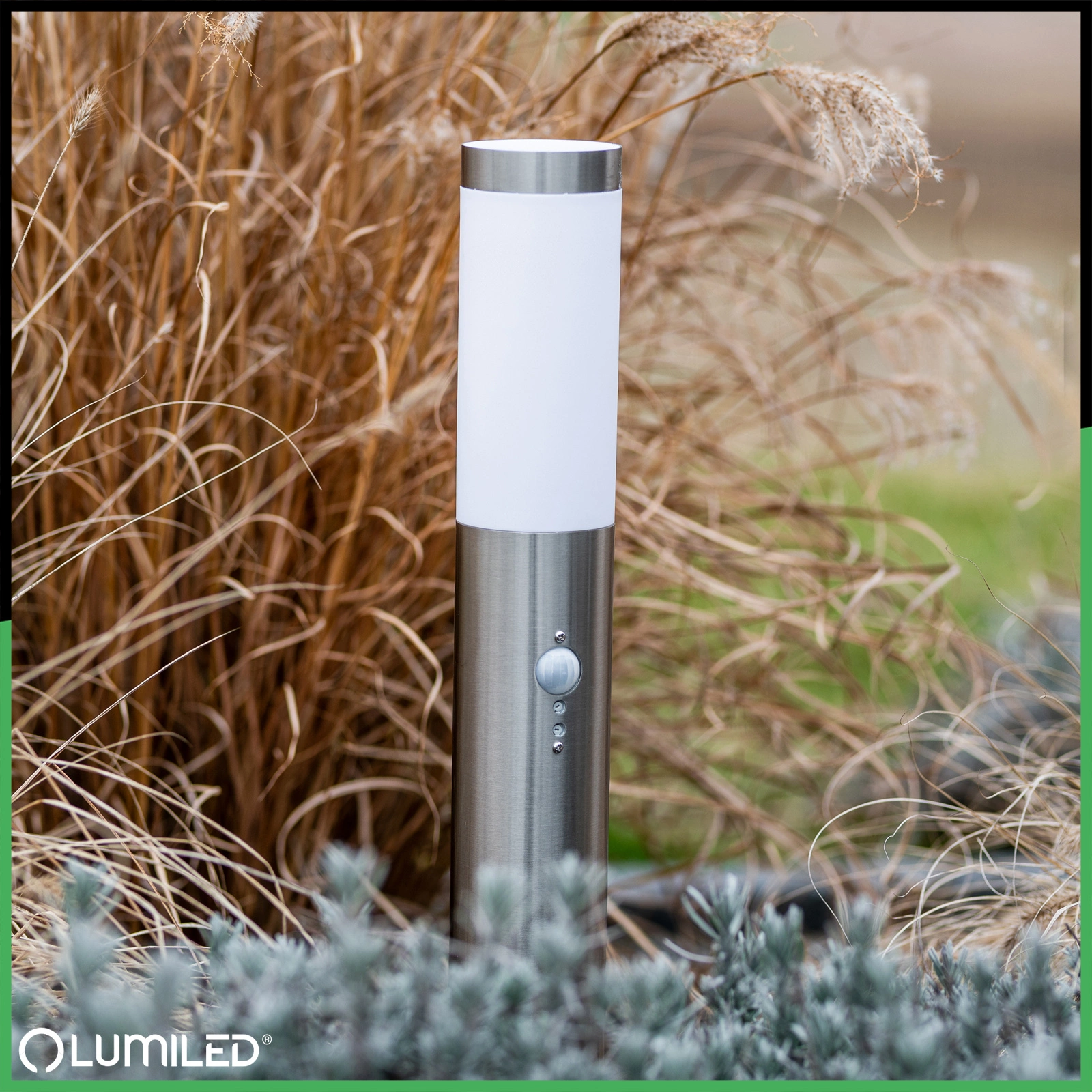 Die 45 cm hohe inoxfarbene Gartenleuchte der Serie LILIUM von LUMILED ist aus hochwertigem Edelstahl und Kunststoff gefertigt. Die Verwendung von rostfreiem Stahl für die Lampe macht sie langlebig, leicht zu reinigen und attraktiv im Aussehen. Die Leuchte wurde mit Blick auf ihre Benutzer entwickelt und verwendet den beliebten E27-Schraubsockel, in den jede Glühbirne mit diesem Gewinde eingeschraubt werden kann und der im Falle einer LED-Lampe eine Leistung von 13 W nicht überschreitet.