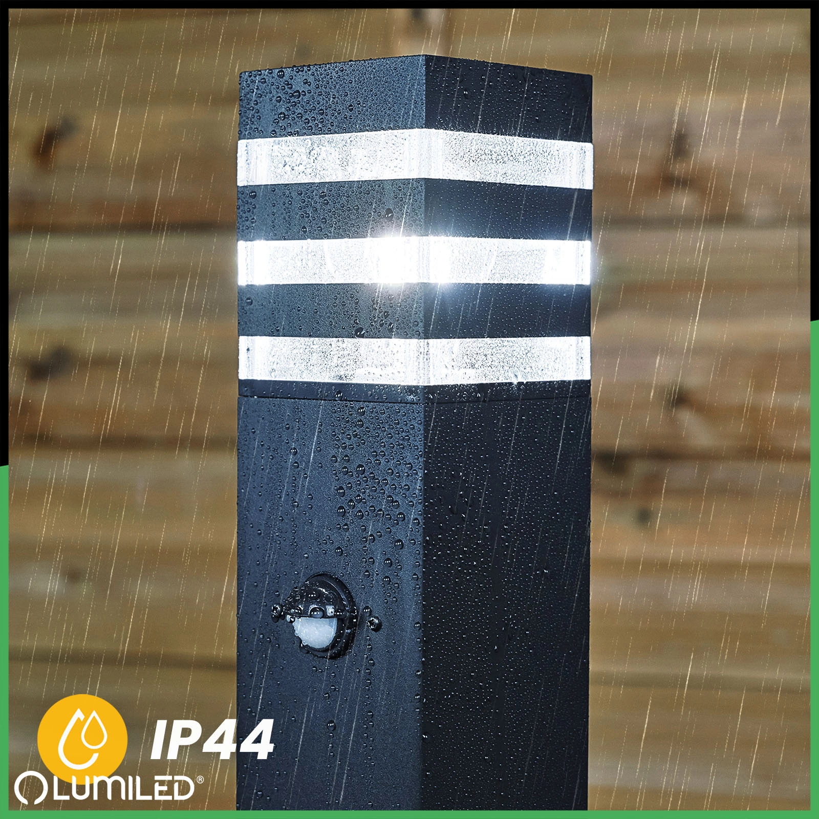 Die IP44-zertifizierte Gartenleuchte ist für den Einsatz in Bereichen konzipiert, die Feuchtigkeit ausgesetzt sind. Der Mast ist spritzwassergeschützt und resistent gegen das Eindringen von Feinstaub, wodurch er sich ideal für den Einsatz im Freien eignet. Die Konstruktion der Leuchte besteht aus Aluminium, das eine hohe Haltbarkeit und Korrosionsbeständigkeit gewährleistet.