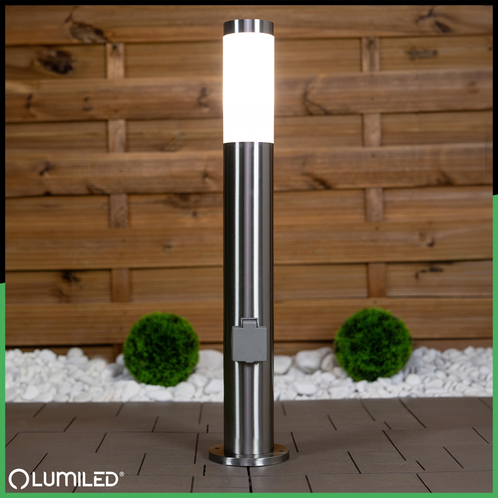 Gartenleuchte, Außenmast mit einer Höhe von 65cm in der Farbe inox der Serie LILIUM von LUMILED. Die Lampe ist aus hochwertigem Edelstahl und Kunststoff gefertigt. Die Verwendung von rostfreiem Stahl für die Lampe macht sie langlebig, leicht zu reinigen und attraktiv im Aussehen. Die Leuchte wurde im Hinblick auf ihre Benutzer entwickelt und verwendet den beliebten E27-Schraubsockel, in den jede beliebige Glühbirne mit diesem Gewinde eingeschraubt werden kann und dessen Leistung im Falle einer LED-Lampe 13 W nicht übersteigt.