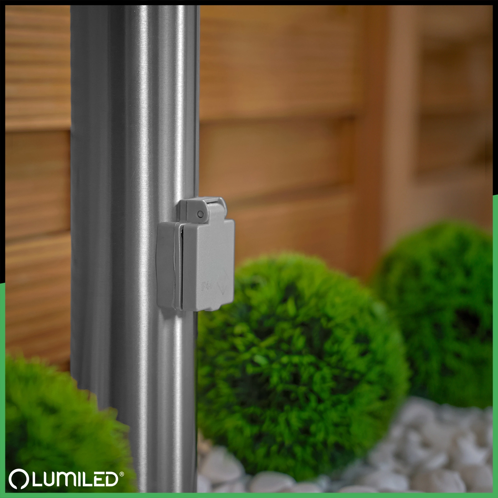 Die Leuchte ist mit einer praktischen Steckdose ausgestattet, die für Geräte mit einer maximalen Leistung von bis zu 3680 W geeignet ist. Mit dieser Steckdose können Sie ganz einfach eine Vielzahl von Alltagsgeräten anschließen, wie z. B. elektrische Rasenmäher, Staubsauger für Autos und andere Werkzeuge, die für die Gartenarbeit oder die Reinigung des Hauses benötigt werden. Sie ist eine ideale Lösung, die die Funktionalität jedes Außenbereichs verbessert und die effiziente und bequeme Nutzung von Elektrowerkzeugen im Freien ermöglicht. Eine Steckdose in einem Gartenpfosten ist ein Komfort- und Sicherheitsmerkmal, das es Ihnen ermöglicht, Ihren Gartenraum besser zu nutzen.