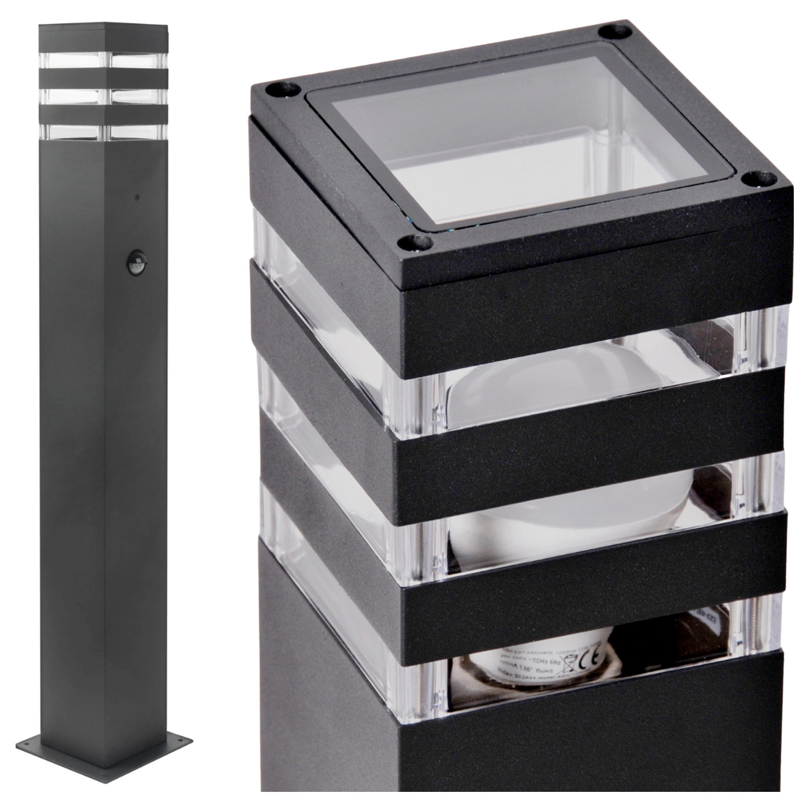 Die vorgestellte Lampe wurde von der Marke Goldlux hergestellt . Der TEKSAS- Pollerleuchte beleuchtet Einfahrten und Wege bis zur Eingangstür gut, da er dank des eingebauten Dämmerungs- und Bewegungssensors Bewegungen perfekt erkennt und dann das Licht einschaltet . Dank der Schutzart IP44 , die einen erhöhten Schutz vor Feuchtigkeit und Witterungseinflüssen bietet, ist ein sicherer Einsatz im Freien möglich. Die Kombination aus Klassik und Moderne macht diese Leuchten universell einsetzbar und die hochwertigen Materialien bei der Herstellung sorgen für einen langen und störungsfreien Betrieb. Konzipiert für die Installation am Boden.