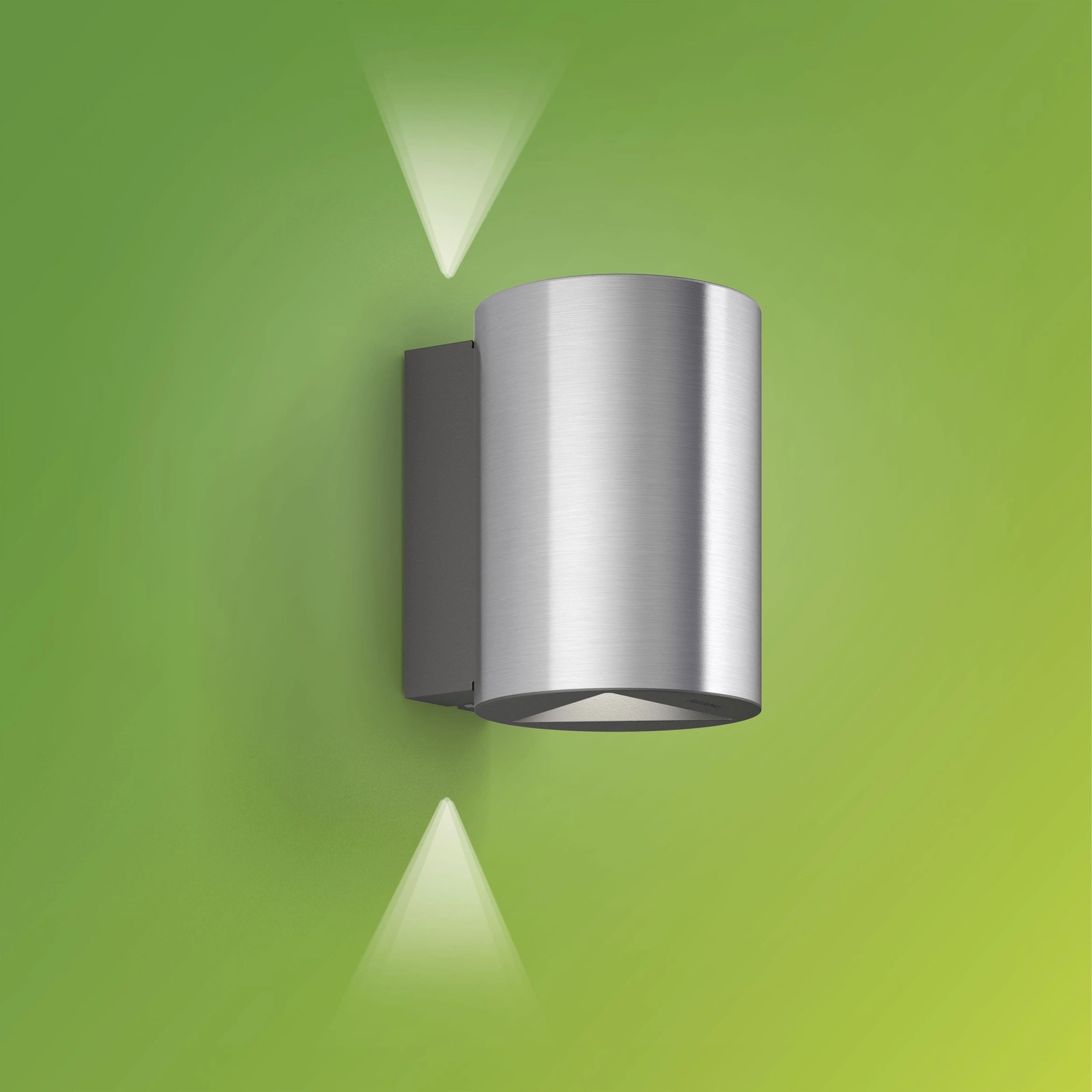 Die Buxus Garten-Wandleuchte von Philips verbindet auf perfekte Weise modernen Stil mit Funktionalität. Diese Fassadenlampe für den Außenbereich ist mit einer energieeffizienten LED-Lichtquelle ausgestattet, die 9 W und einen Lichtstrom von 1000 Lumen liefert. Das ausgestrahlte Licht mit einer warmen Farbe von 2700K schafft eine gemütliche Atmosphäre im Garten oder auf der Terrasse. Mit der Schutzart IP44 ist die Wandleuchte wetterfest und damit ideal für den Einsatz im Freien geeignet. Das silberne Gehäuse verleiht der Lampe ein modernes Aussehen, das sich perfekt in eine Vielzahl von Gartenarrangements einfügen wird. Das Produkt wird mit 220-240 Volt betrieben, was einen zuverlässigen Betrieb gewährleistet. Die Langlebigkeit der Lampe wird durch ihre Lebensdauer von bis zu 25.000 Stunden garantiert, so dass Sie lange Zeit eine gleichbleibende Beleuchtung genießen können. Die Buxus-Gartenwandleuchte ist die perfekte Lösung für alle, die die Kombination von Innovation und Ästhetik schätzen.
