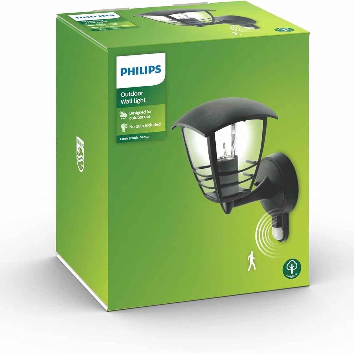 Die klassische Gartenlaterne Creek von der renommierten Marke Philips eignet sich perfekt als auffällige und funktionale Fassadenleuchte. Diese Wandleuchte ist aus langlebigen Materialien gefertigt und in elegantem Schwarz gehalten. Sie zeichnet sich durch einen modernen Look und hohe Qualität aus. Die Verwendung eines E27-Gewindes ermöglicht den Einsatz einer breiten Palette von Leuchtmitteln, und der eingebaute Bewegungs- und Dämmerungssensor sorgt für Energieeffizienz und Komfort. Dank der Schutzklasse IP44 ist die Leuchte wetterfest und eignet sich ideal für die Beleuchtung von Räumen im Haus oder im Garten. Mit dieser Wandleuchte bringen Sie nicht nur Funktionalität, sondern auch einzigartigen Stil in Ihre Umgebung.