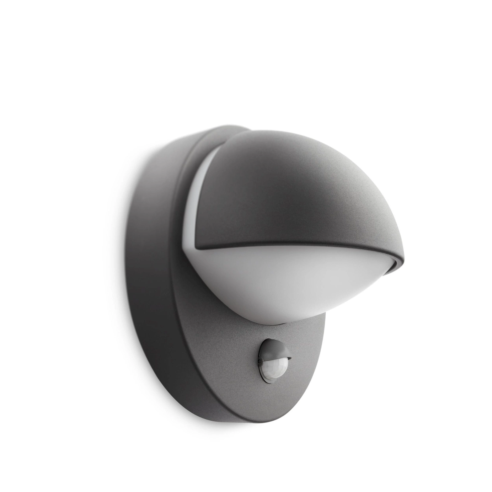 Die Philips June Fassade Garten-Wandleuchte kombiniert modernes Design mit fortschrittlicher Funktionalität. Ausgestattet mit einer E27-Fassung, ist diese Lampe ideal für alle, die Effizienz und Stil schätzen. Mit der Schutzart IP44 ist diese Außenlampe wetterfest und eignet sich daher hervorragend für die Beleuchtung von Gärten, Terrassen oder Gebäudefassaden. Die Wandleuchte June zeichnet sich durch ihre anthrazitfarbene Oberfläche aus, die sich perfekt in eine Vielzahl von Umgebungen einfügt, von klassisch bis modern. Ein eingebauter Bewegungs- und Dämmerungssensor sorgt dafür, dass sich die Leuchte automatisch einschaltet, was Sicherheit und Komfort erhöht. Darüber hinaus sorgen die 220-240-V-Netzstromversorgung und die LED-Technologie für eine langlebige und energieeffiziente Nutzung. Vertrauen Sie auf die Marke Philips und entscheiden Sie sich für die Qualität und Zuverlässigkeit, die Sie von einer Außenbeleuchtung erwarten.