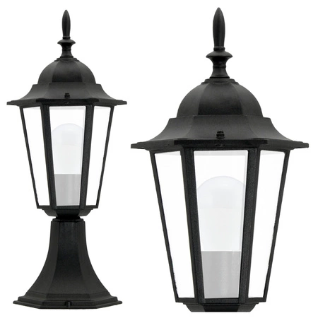 Der angebotene schwarze Rahmen zeichnet sich vor allem durch sein schönes, klassisches Aussehen aus. Die Leuchte kann eine Lichtquelle mit einer Standard- E27- Fassung verwenden . Das Produkt stellt nicht nur eine effektive Lichtquelle dar, die Ihre Plätze effektiv beleuchtet, sondern ist auch eine hervorragende Dekoration für Ihren Garten.