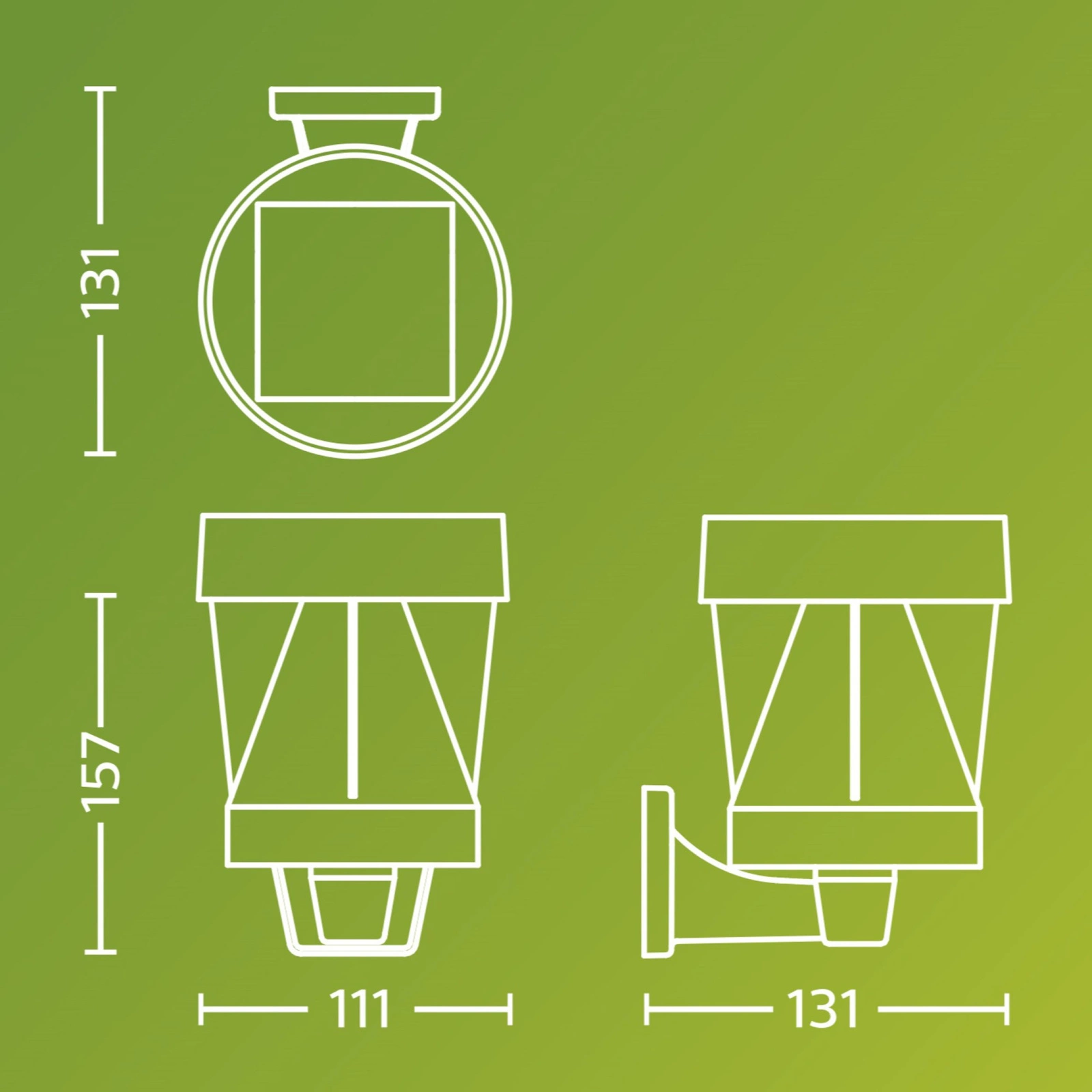 Diese Philips Außenlampe wurde speziell für feuchte Außenumgebungen entwickelt und strengstens auf Wasserdichtigkeit getestet. Ihre IP44-Klassifizierung bedeutet, dass sie für den Schutz vor Staub und Spritzwasser zertifiziert wurde - sie ist also ideal für die allgemeine Verwendung im Freien.